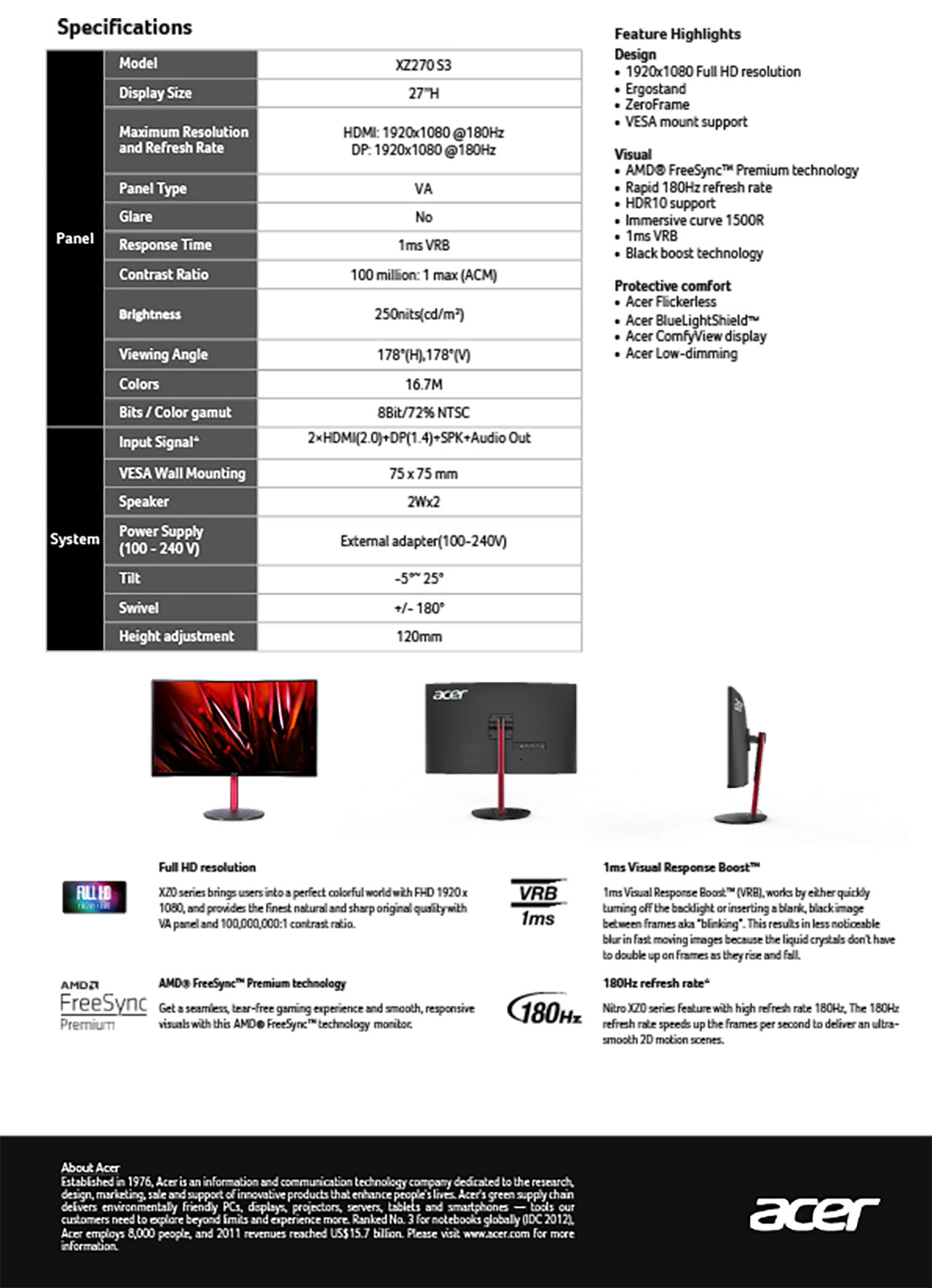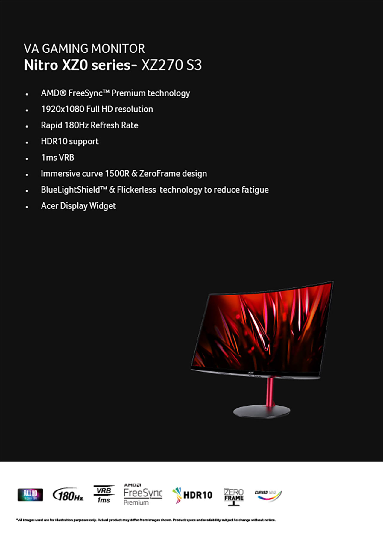 ACER NITRO 27" FHD MONITOR XZ270 S3 CURVED