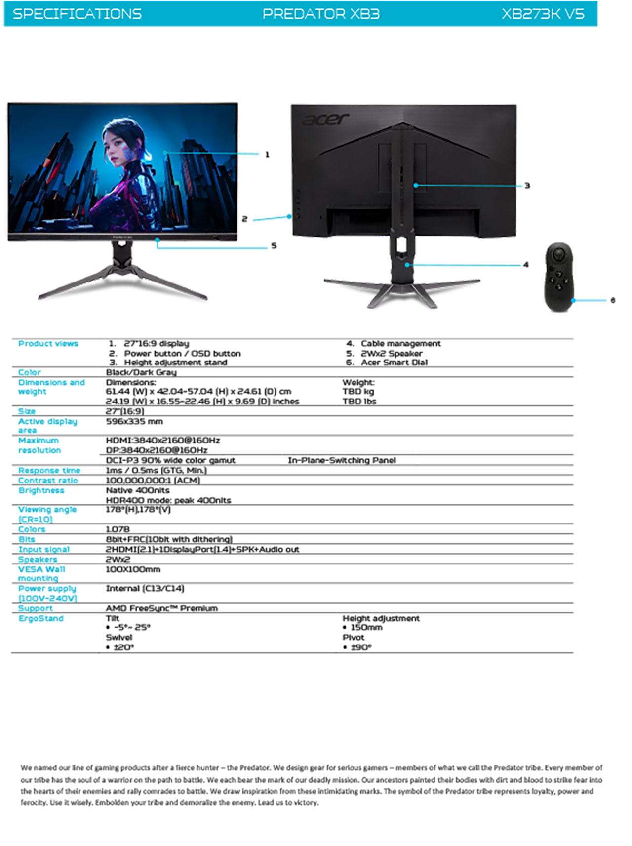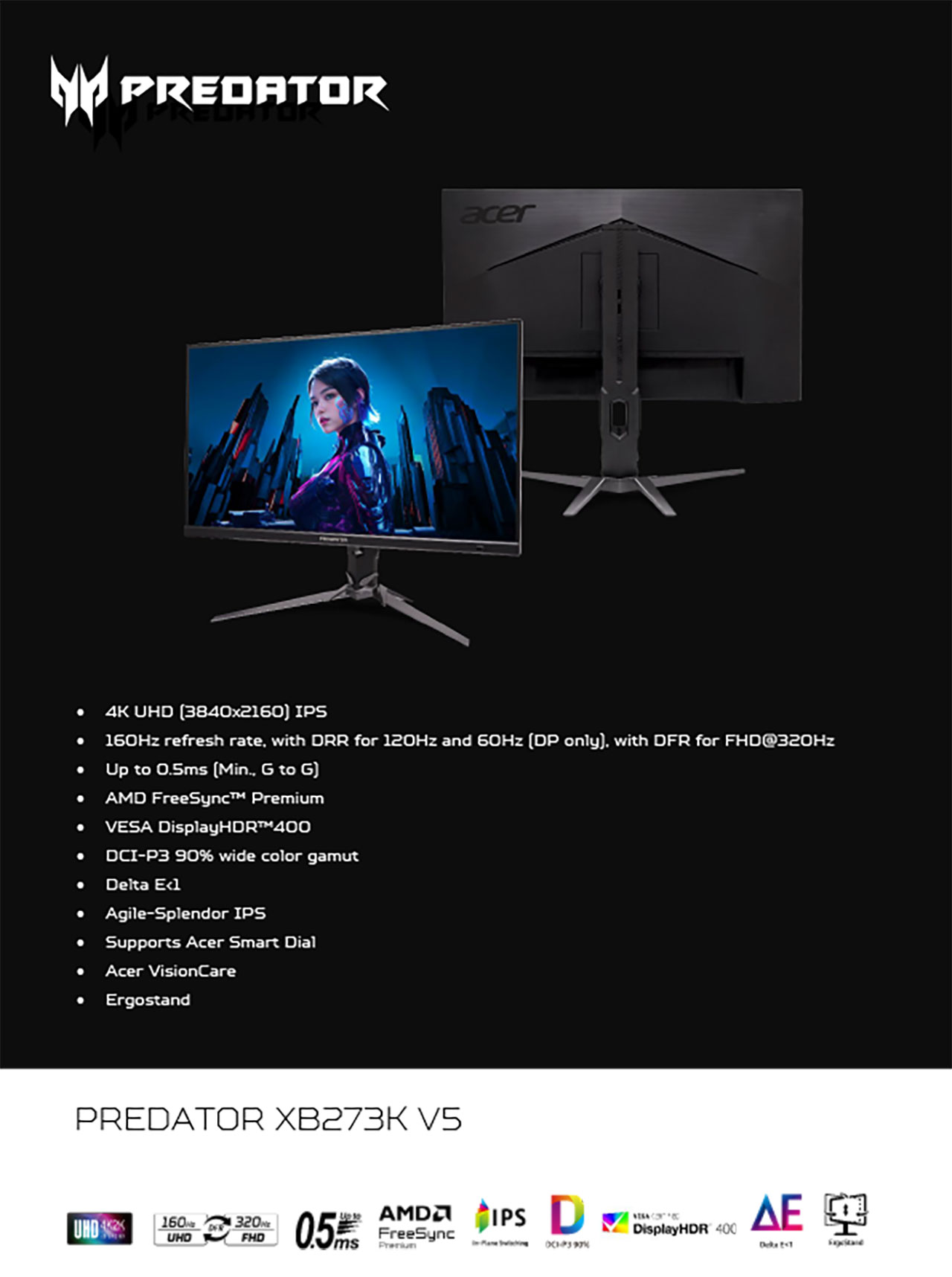 ACER PREDATOR 27" 4K UHD IPS MONITOR XB273K V5