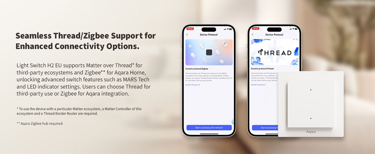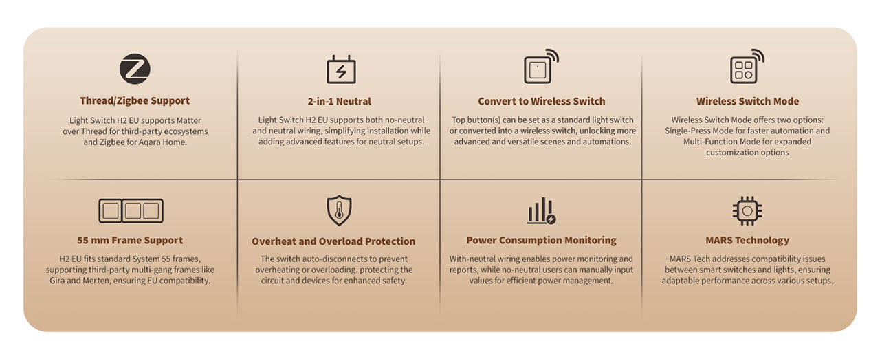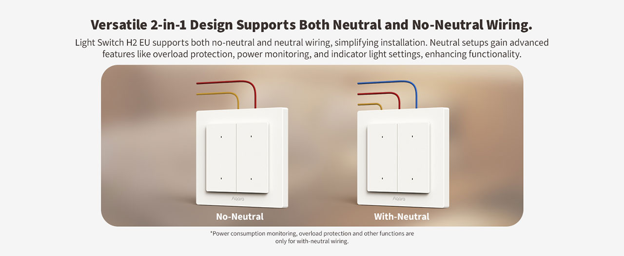 AQARA LIGHT SWITCH H2 EU (2 BUTTONS, 1 CHANNEL) WS-K07D