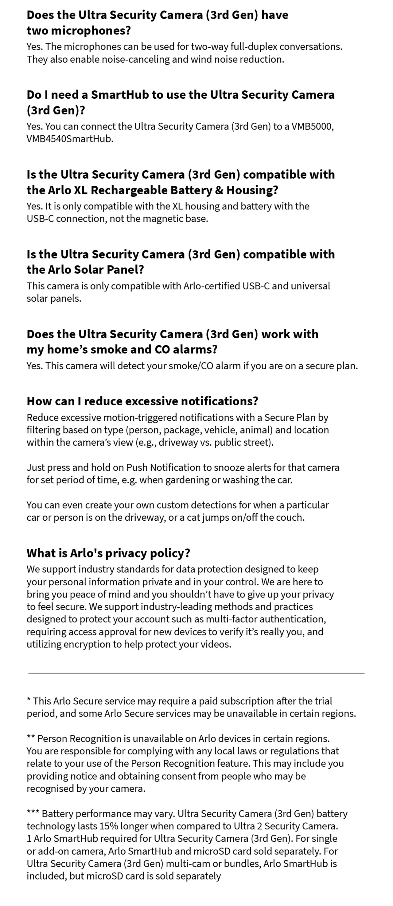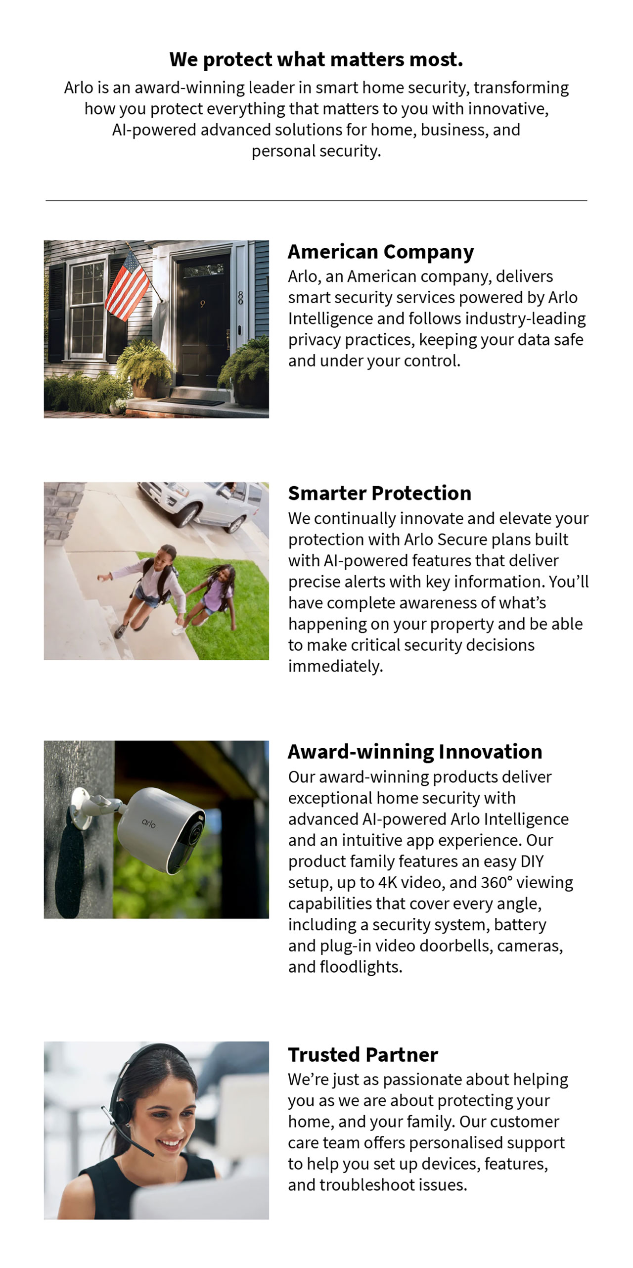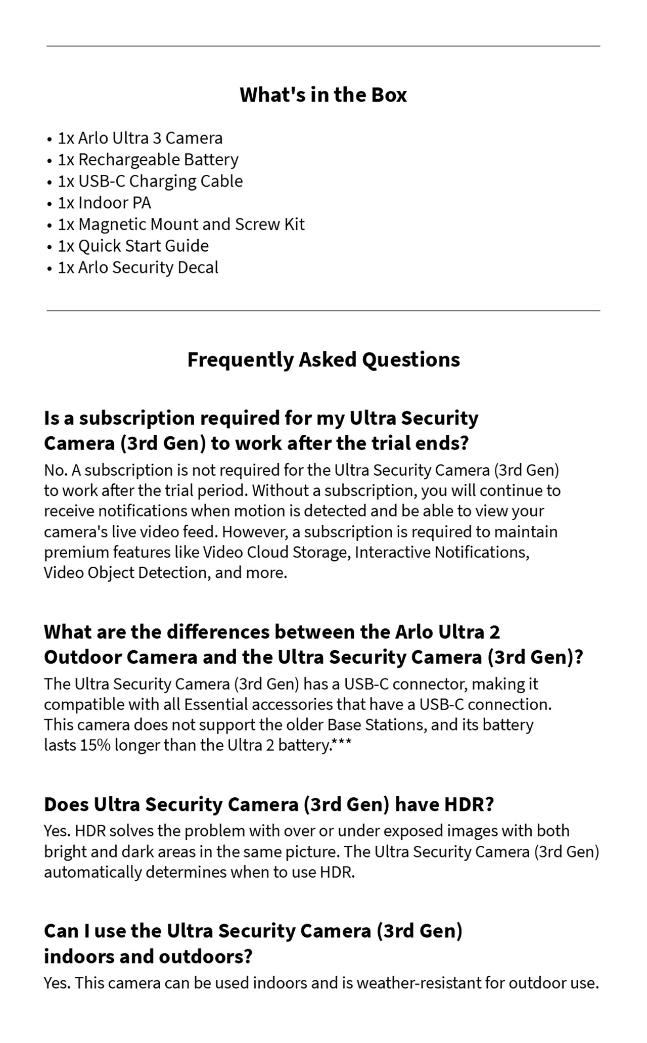 Product includes: 30-day trial of an Arlo Secure Plan. Paid Subscription required to maintain premium features after trial.