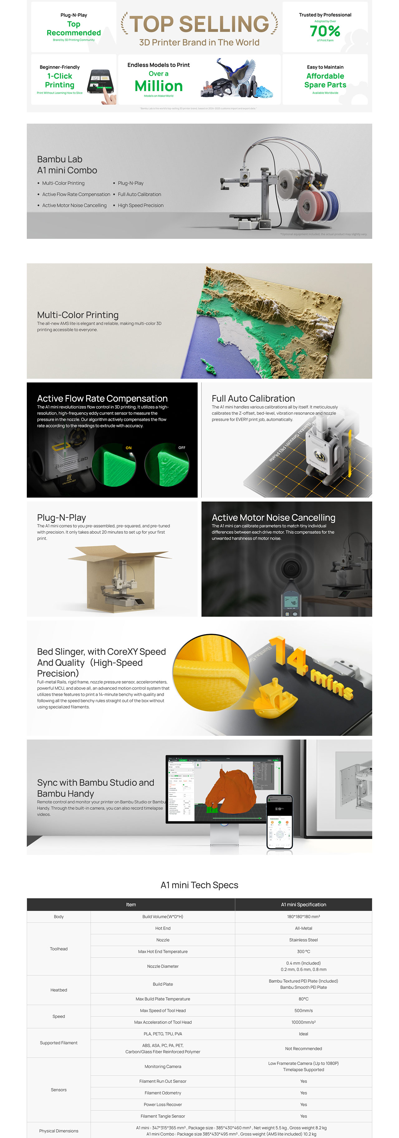BAMBU LAB A1 MINI 3D PRINTER BAM-PF002-M-UK