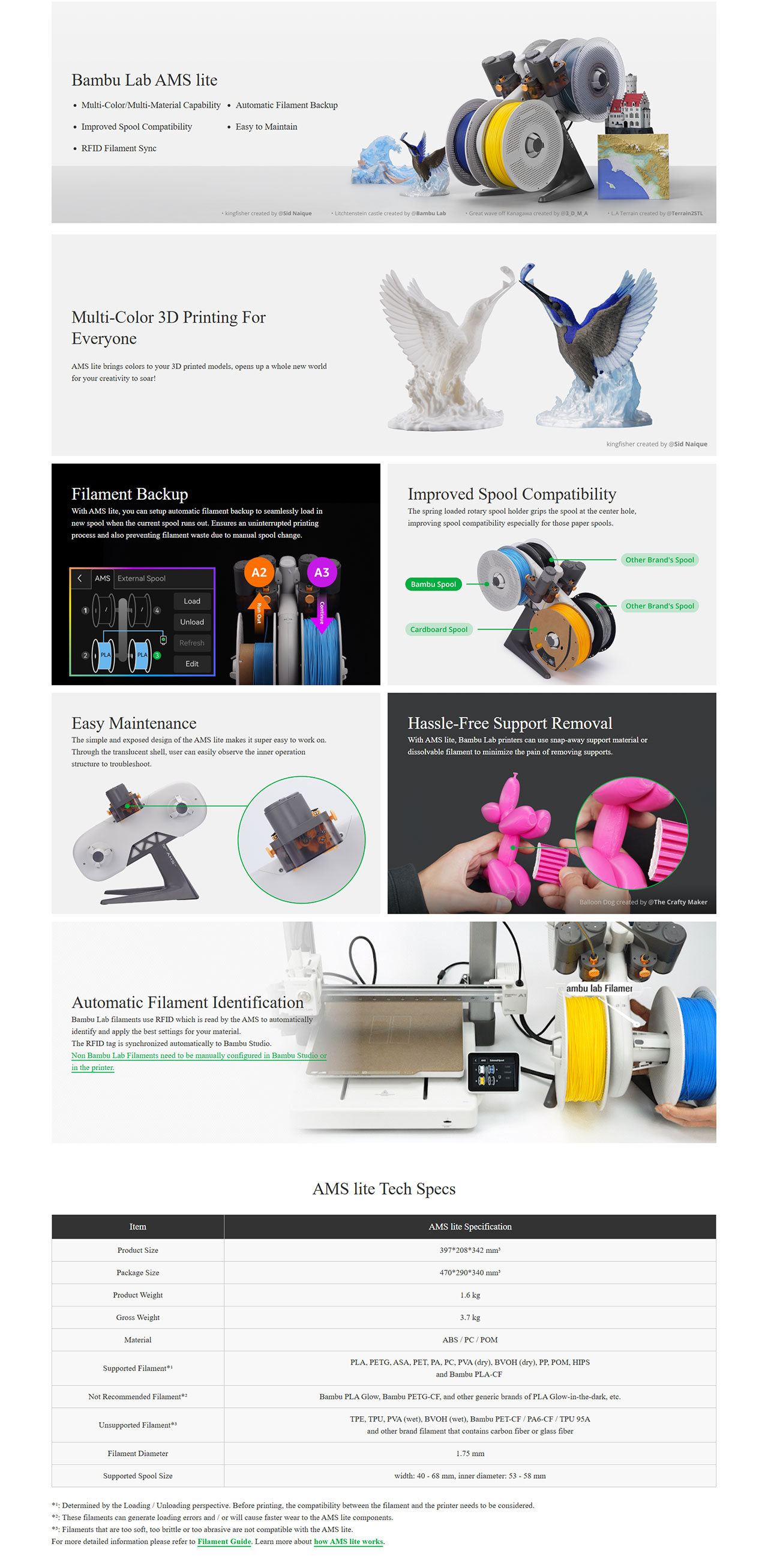- Automatic filament backup for continuous printing