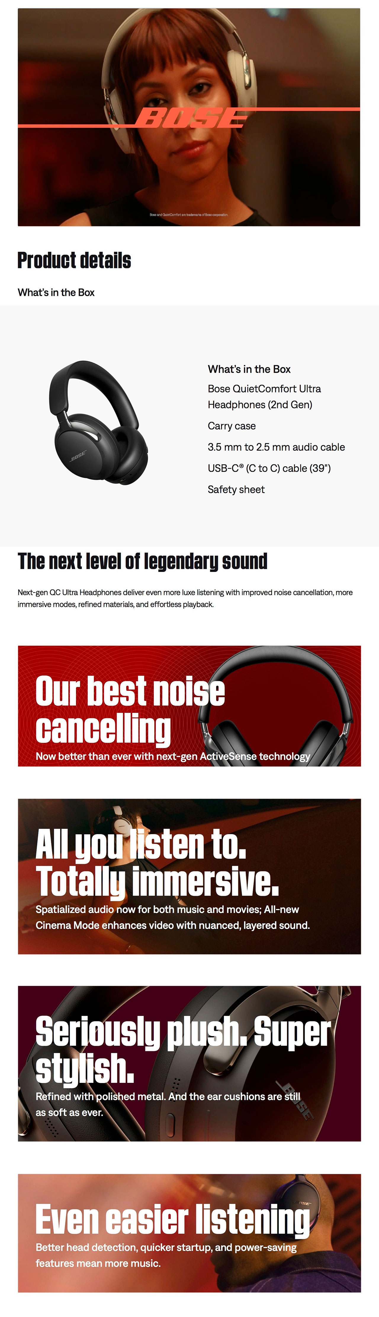 The Bose QuietComfort Ultra (Gen 2) Wireless Headset is ideal for music enthusiasts, gamers, and professionals seeking superior sound quality and noise cancellation. Perfect for long listening sessions, whether you're at home, in the office, or on the go.