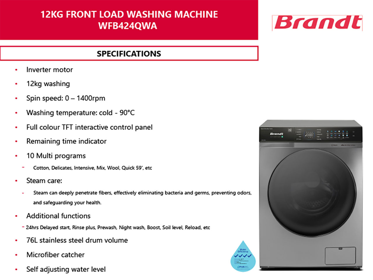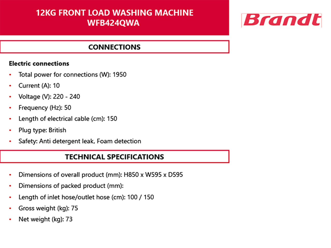 BRANDT FRONT LOAD WASHER WFB424QWA