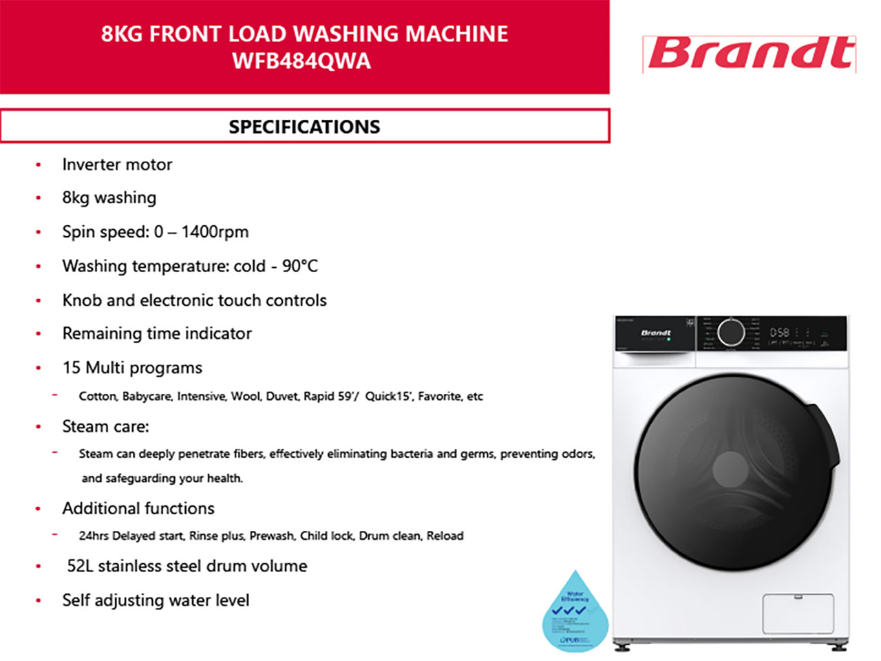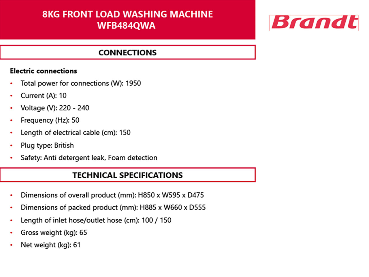 BRANDT FRONT LOAD WASHER WFB484QWA