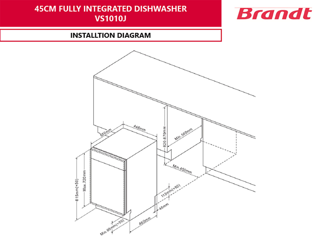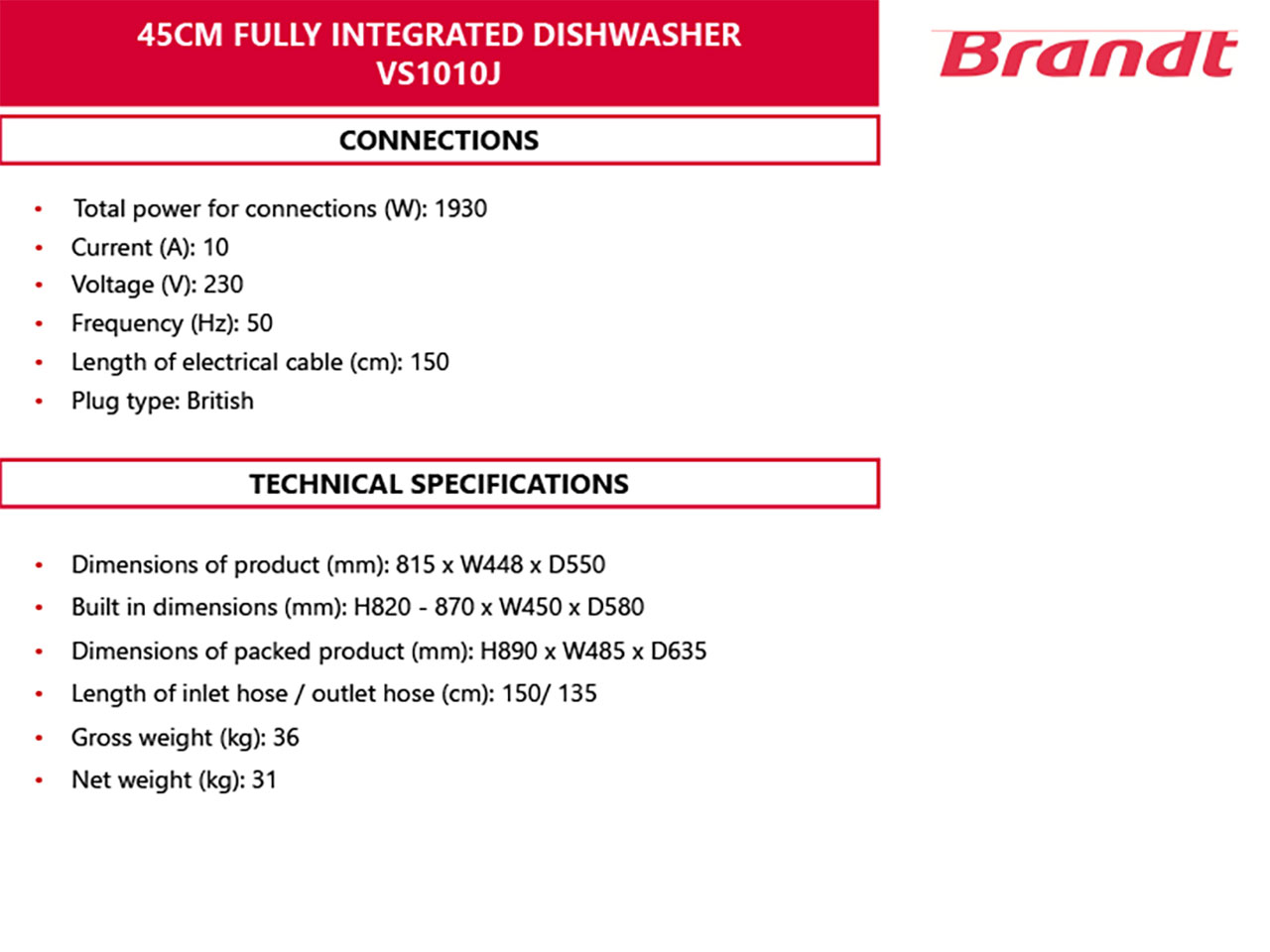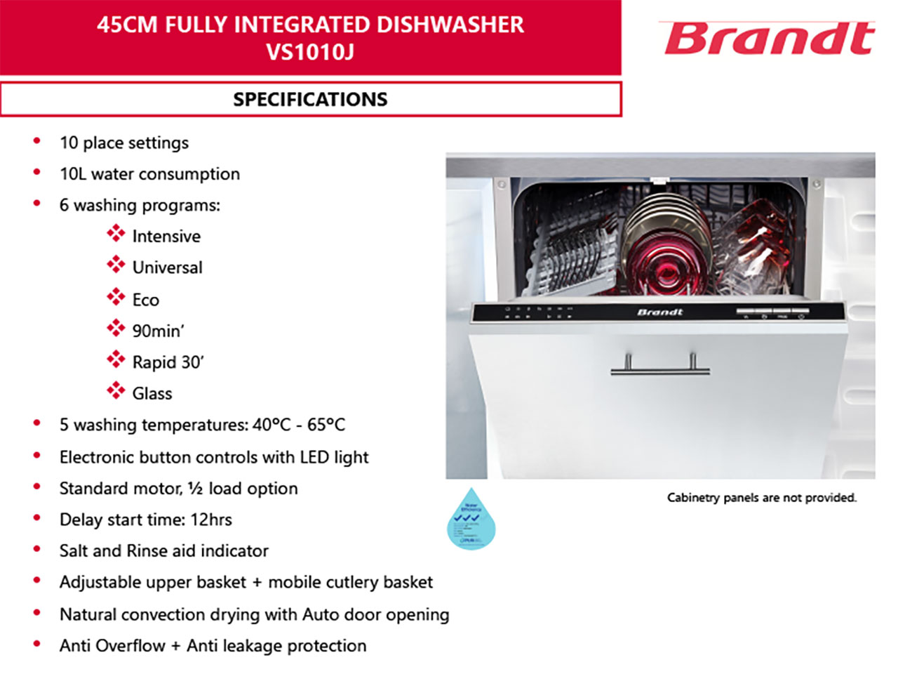 BRANDT FULLY INTEGRATED DISHWASHER VS1010J
