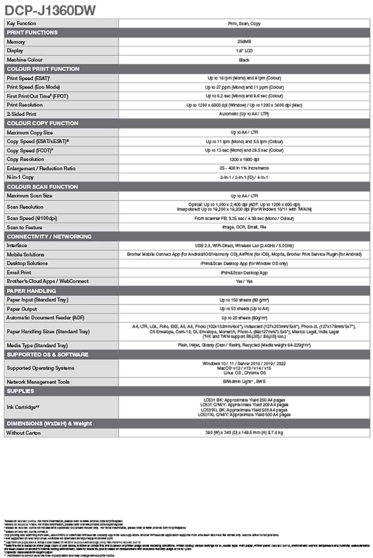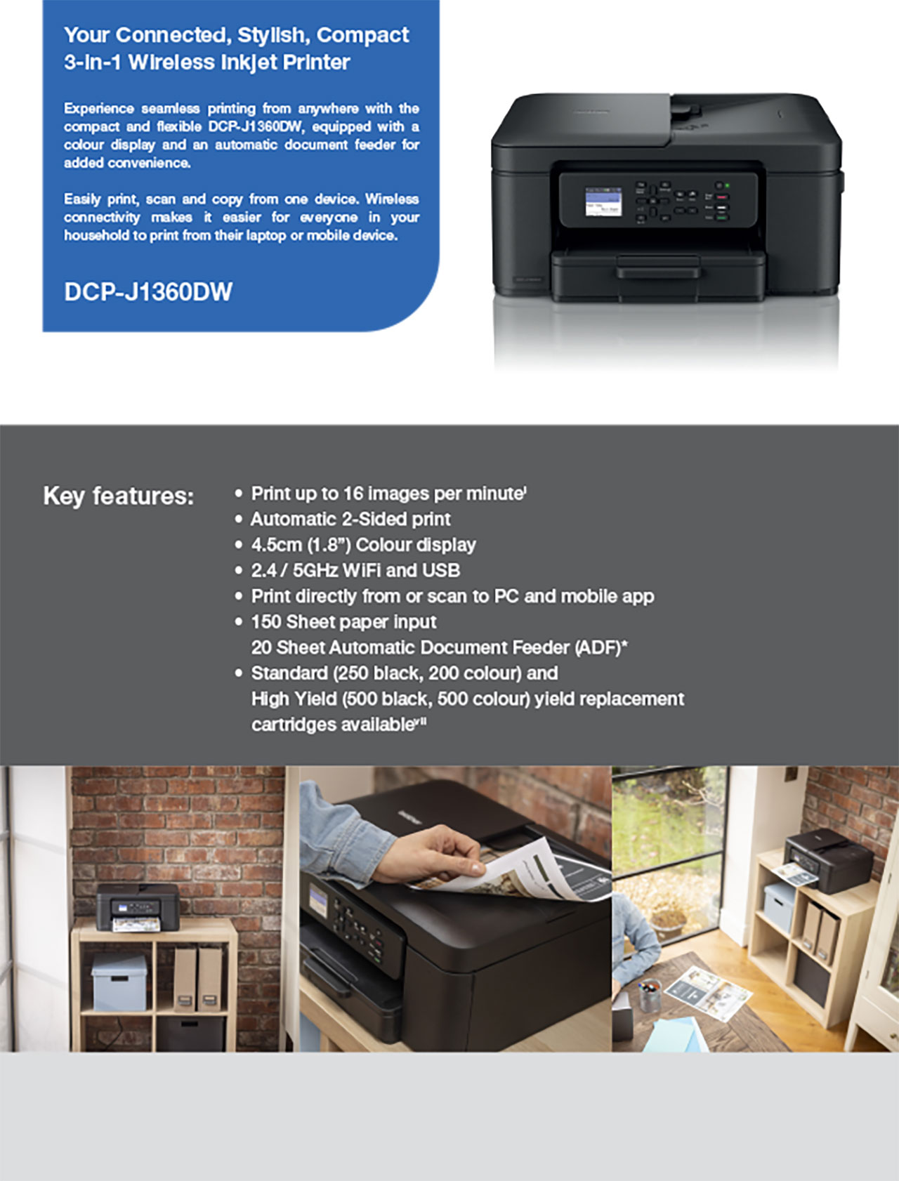 BROTHER A4 INKJET PRINTER W ADF DCP-J1360DW
