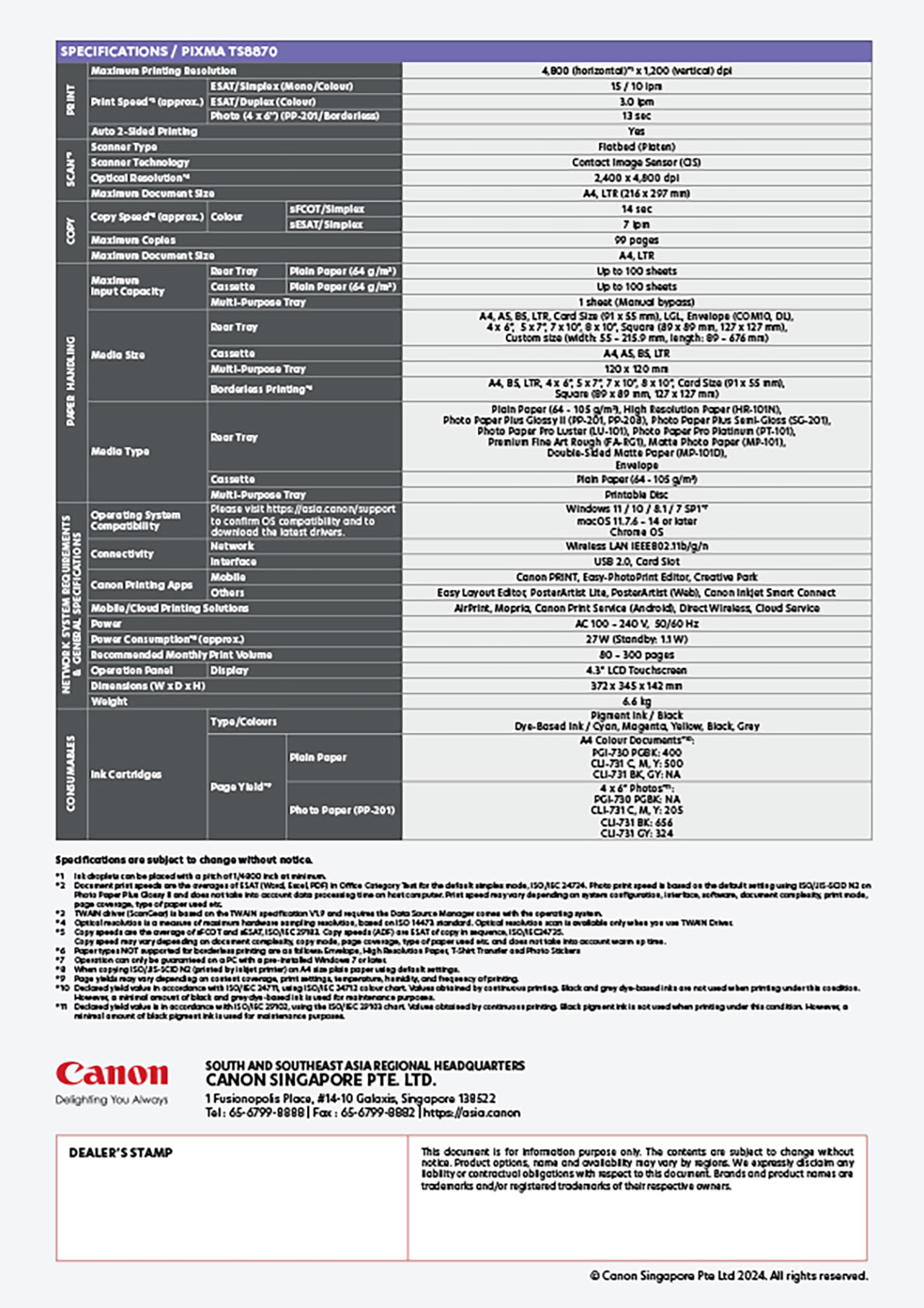 CANON PIXMA PHOTO AIO PRINTER TS8870 WHITE