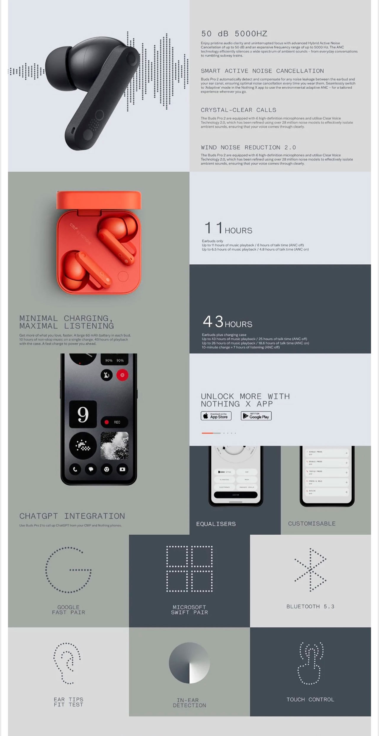 CMF BUDS PRO 2 WIRELESS EARBUDS (GEN 2) - LIGHT GREY CMF B187-LG