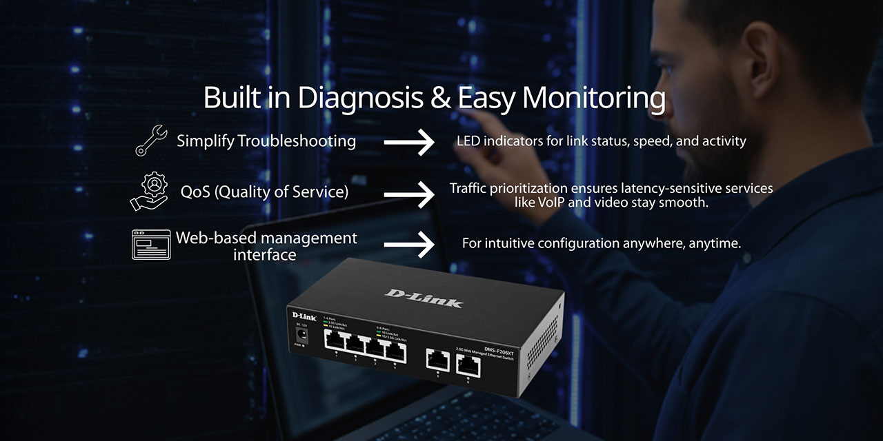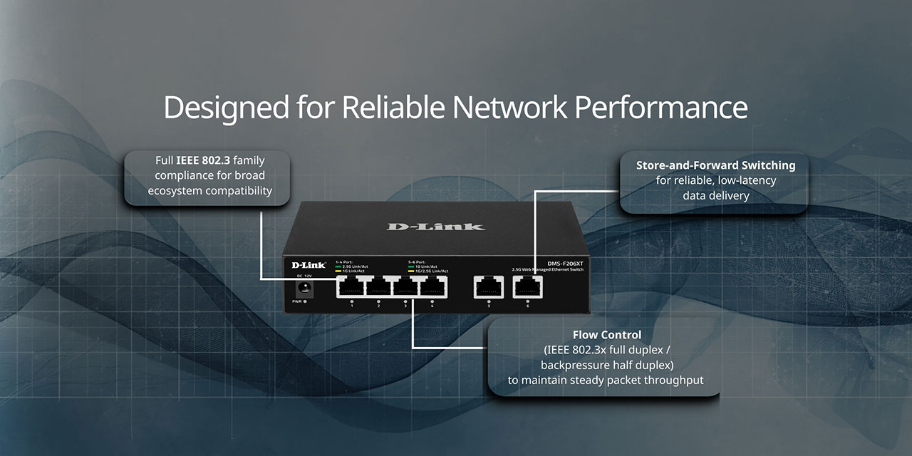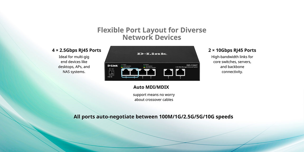 D-LINK 4-PORT 2.5G AND 2-PORT 10G WEB MANAGED ETHERNET SWITCH DMS-F206XT