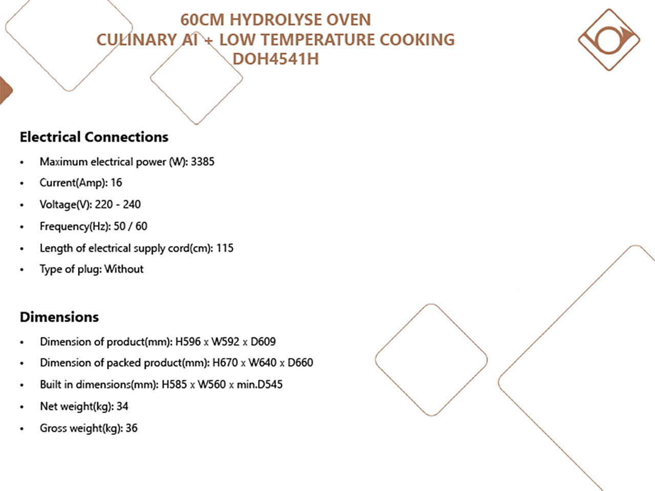 DE DIETRICH HYDROLYSE OVEN DOH4541H