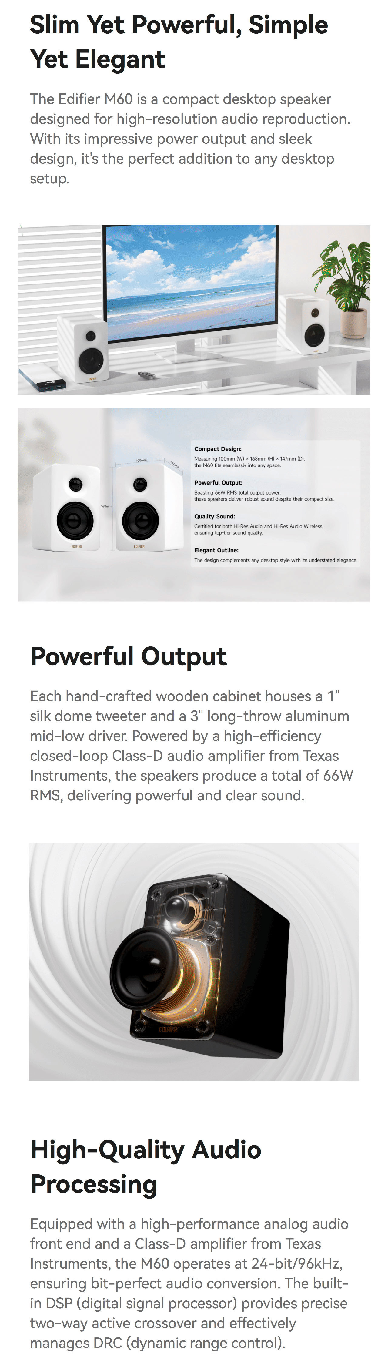 EDIFIER M60 66W 2.0 COMPACT MULTIMEDIA SPEAKERS - WHITE M60 WHITE