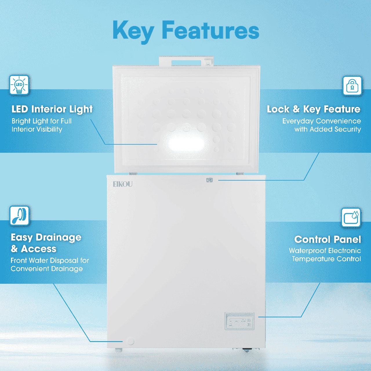 The Eikou Chest Freezer EIK-1-101 is ideal for families and home cooks who need extra refrigeration space. It is perfect for storing bulk groceries, frozen goods, and seasonal items while keeping them easily accessible and well-organized.