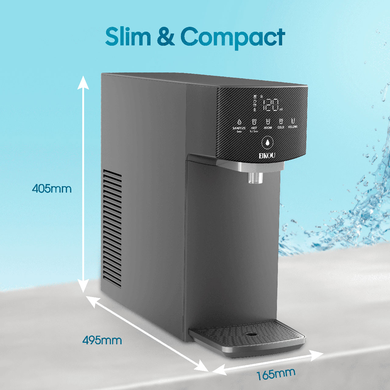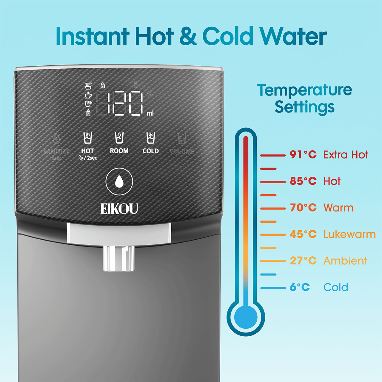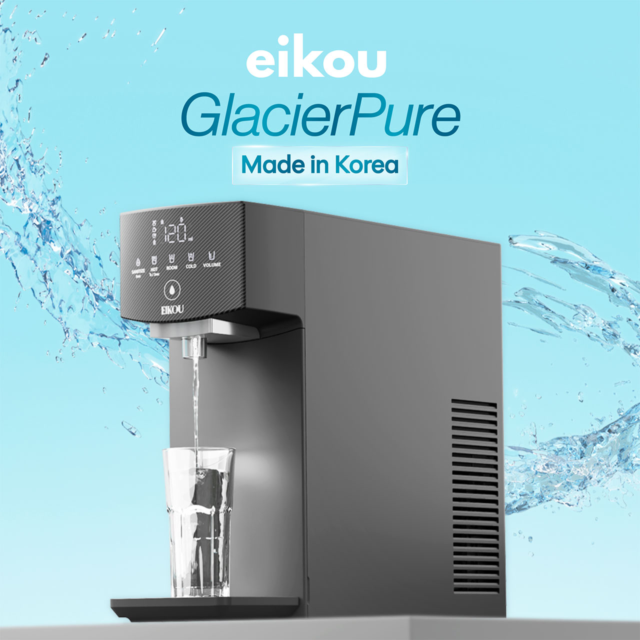 The Eikou Glacierpure Water Purifier Eik-010du is a versatile water purification system designed for home and office use. It offers hot, cold, and ambient water with custom volume settings and auto sterilization mode, ensuring clean and safe water at your fingertips.