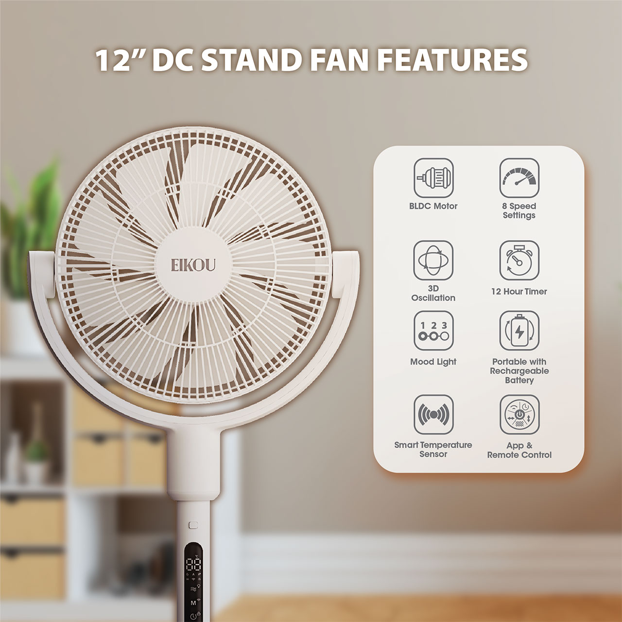 12" DC STAND STAND FAN - (FROSTED WHITE)