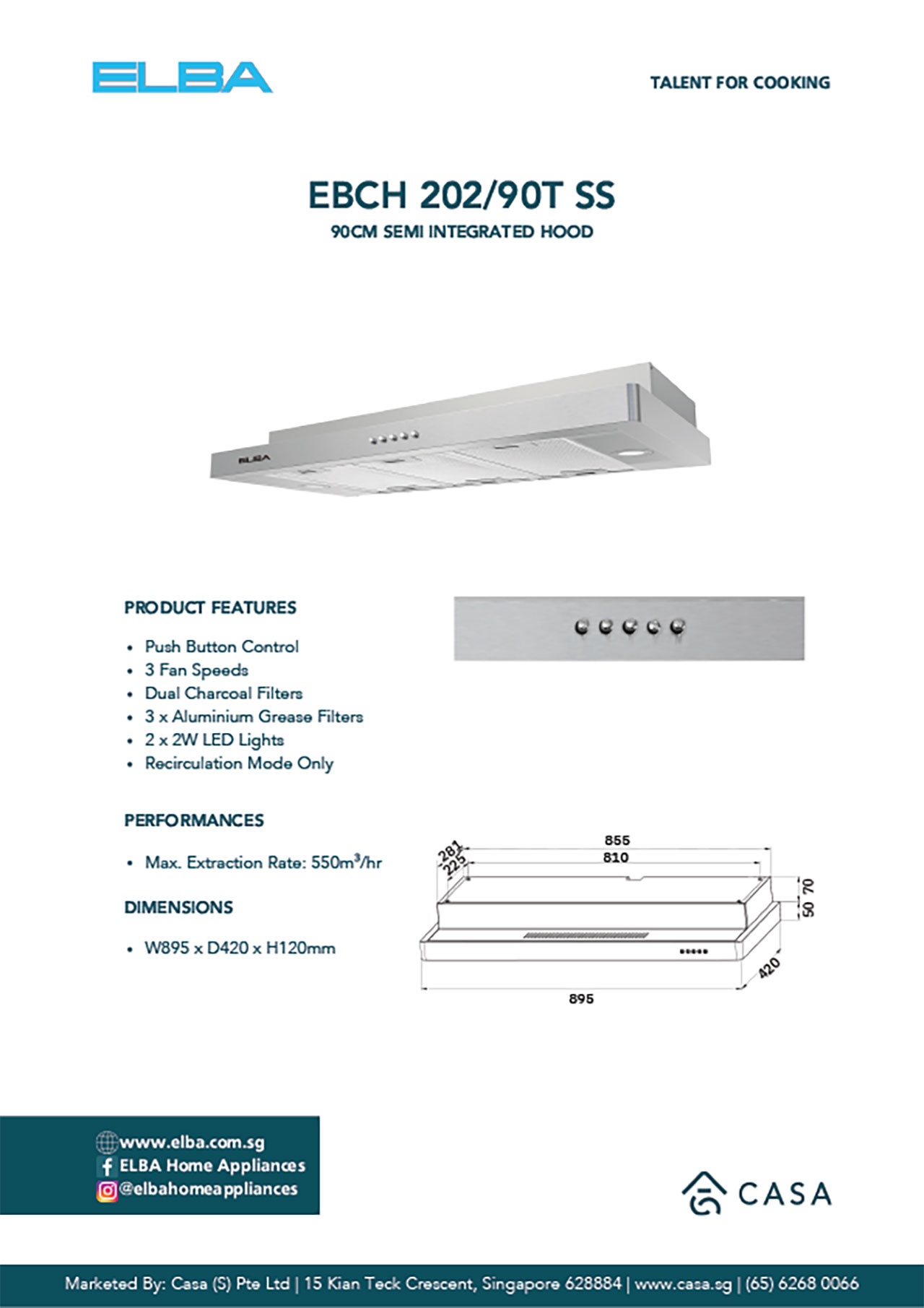 ELBA SEMI INTEGRATED HOOD EBCH202/90TSS