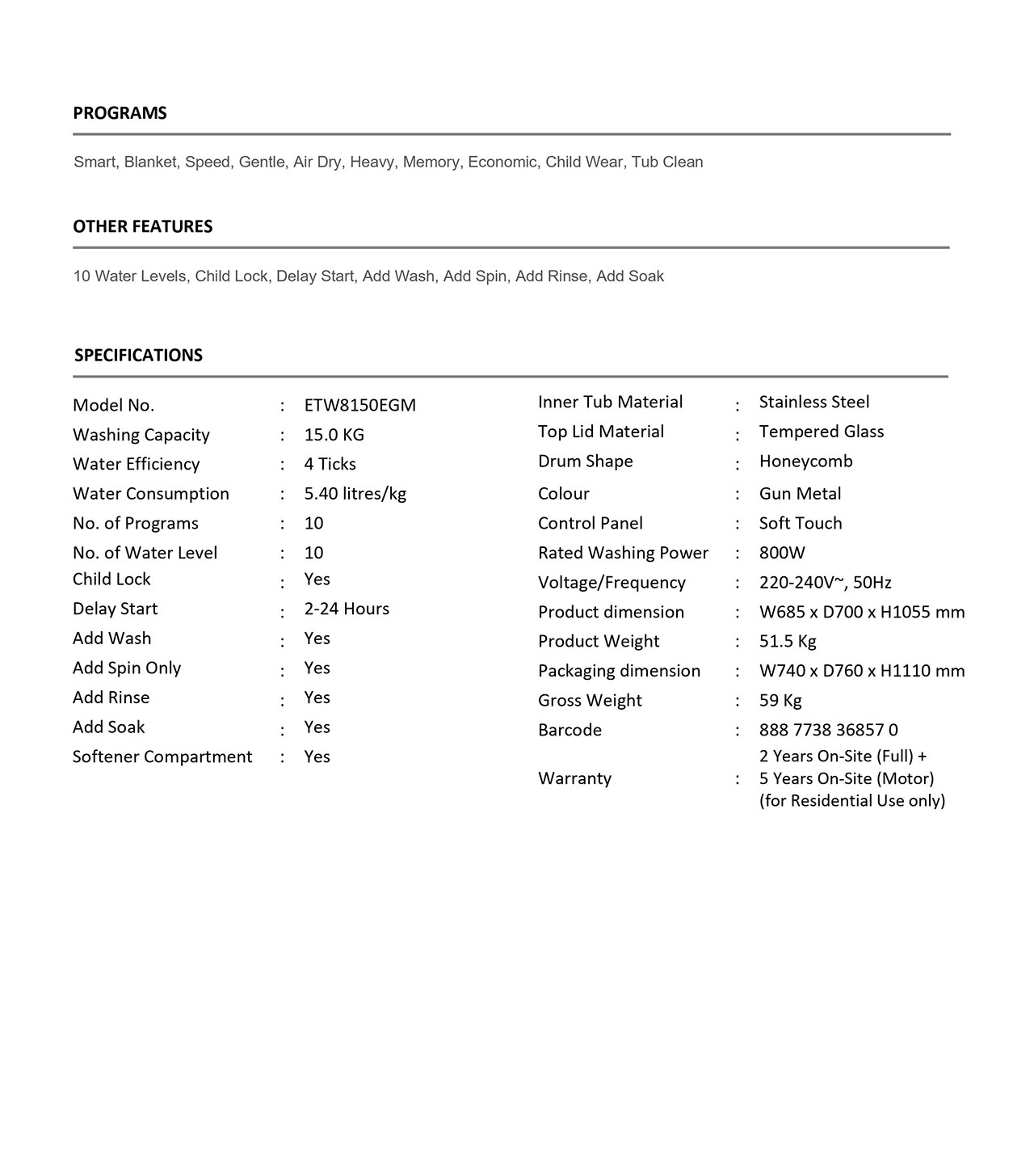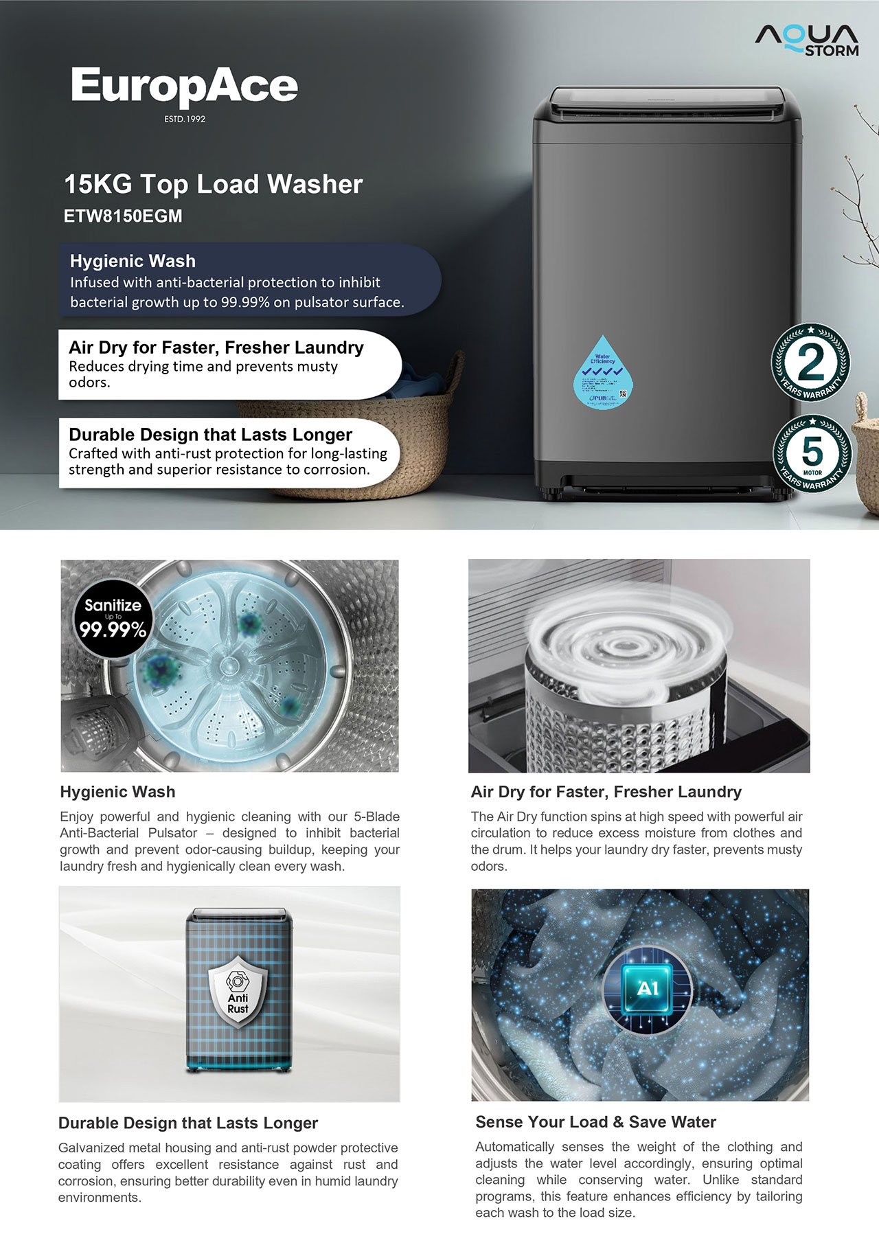EUROPACE TOP LOAD WASHER ETW8150EGM