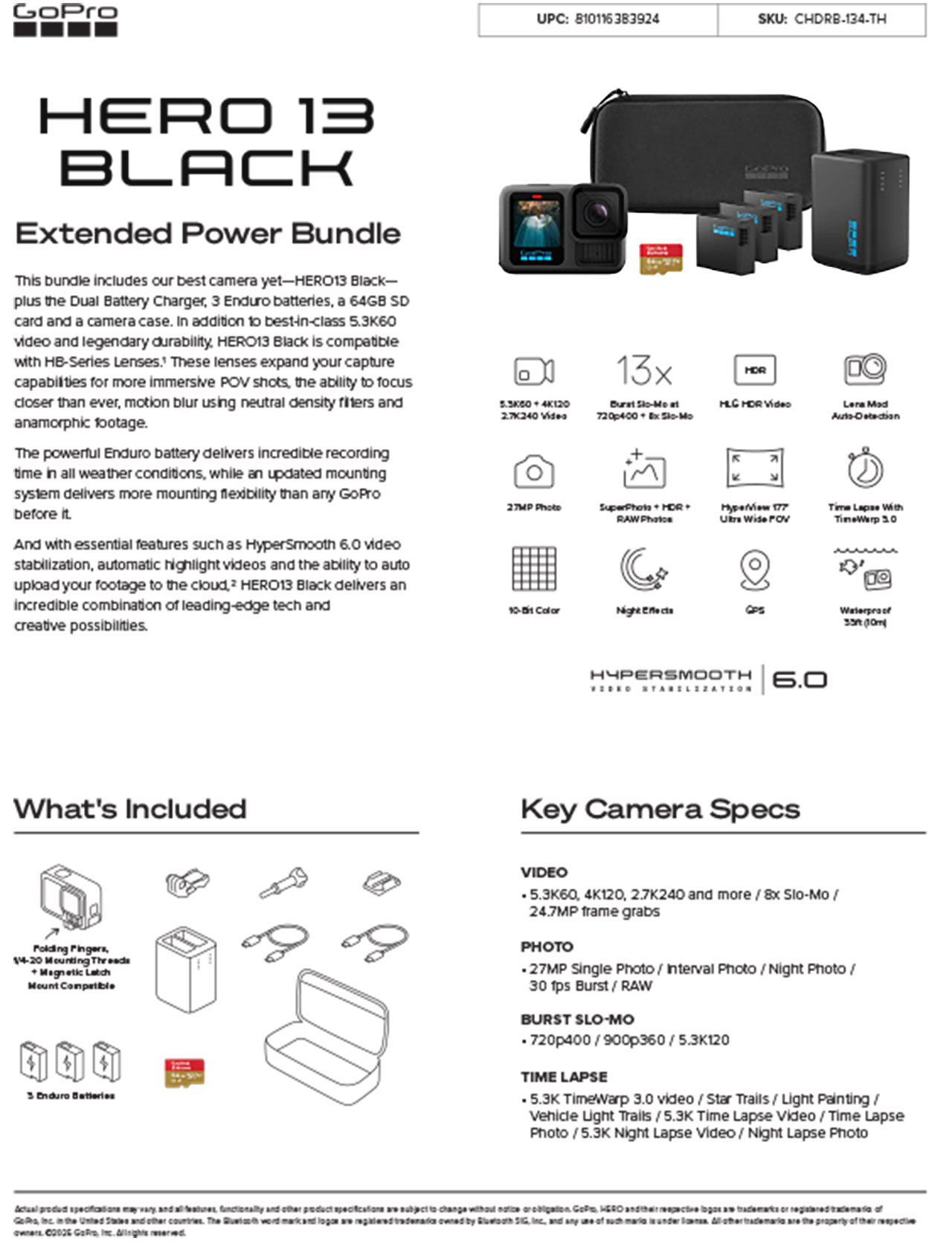 GOPRO HERO 13 BLACK EXTENDED POWER BUNDLE CHDRB-134-RW
