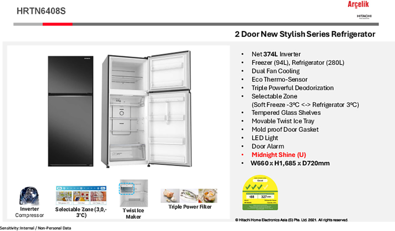 HITACHI 2 DOOR FRIDGE HRTN6408SUSG
