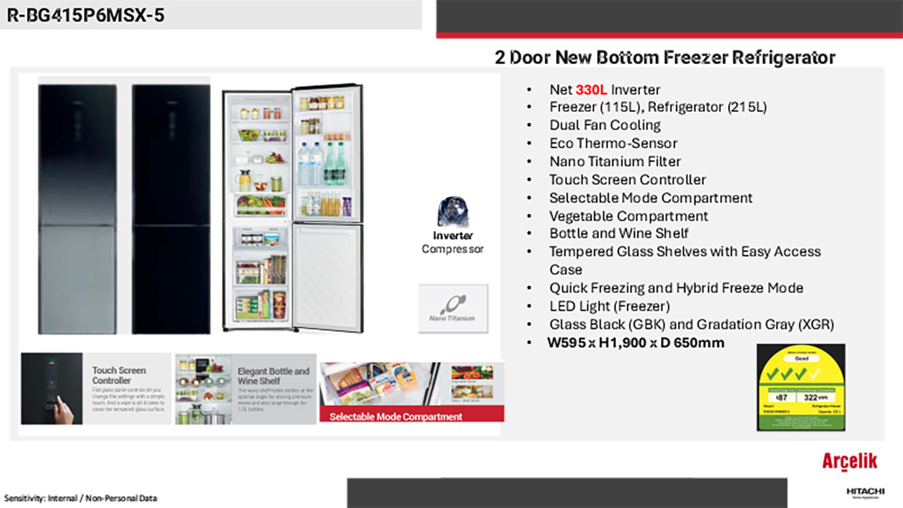 HITACHI 2 DOOR FRIDGE R-BG415P6MSX-5-GBK