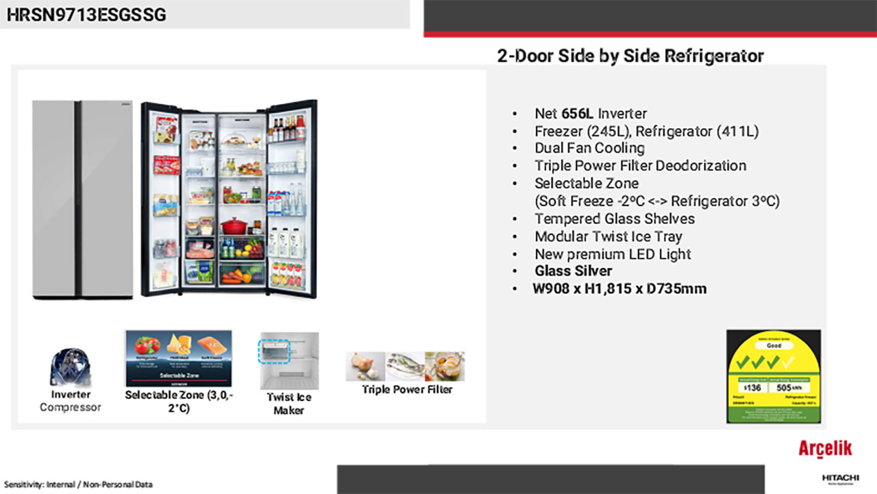 HITACHI SIDE BY SIDE FRIDGE HRSN9713ESGSSG