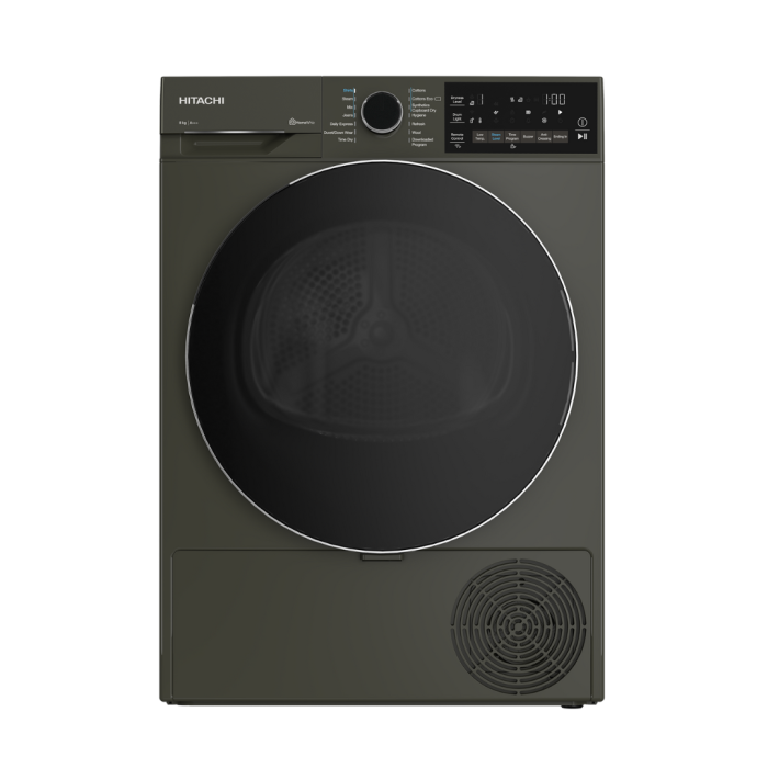 The HITACHI TUMBLE DRYER TD-80XFVEM is a state-of-the-art appliance designed for modern households. With an 8kg capacity and a sleek Volcanic Gray finish, it fits perfectly into any home. Featuring a Heat Pump dryer type, it ensures energy-efficient drying with a 5-tick energy rating. The Touch LED Display makes it user-friendly, while the Steam & Wear function refreshes garments and provides wrinkle-free results without ironing. Ideal for families and individuals who value efficiency and style in their home appliances.
