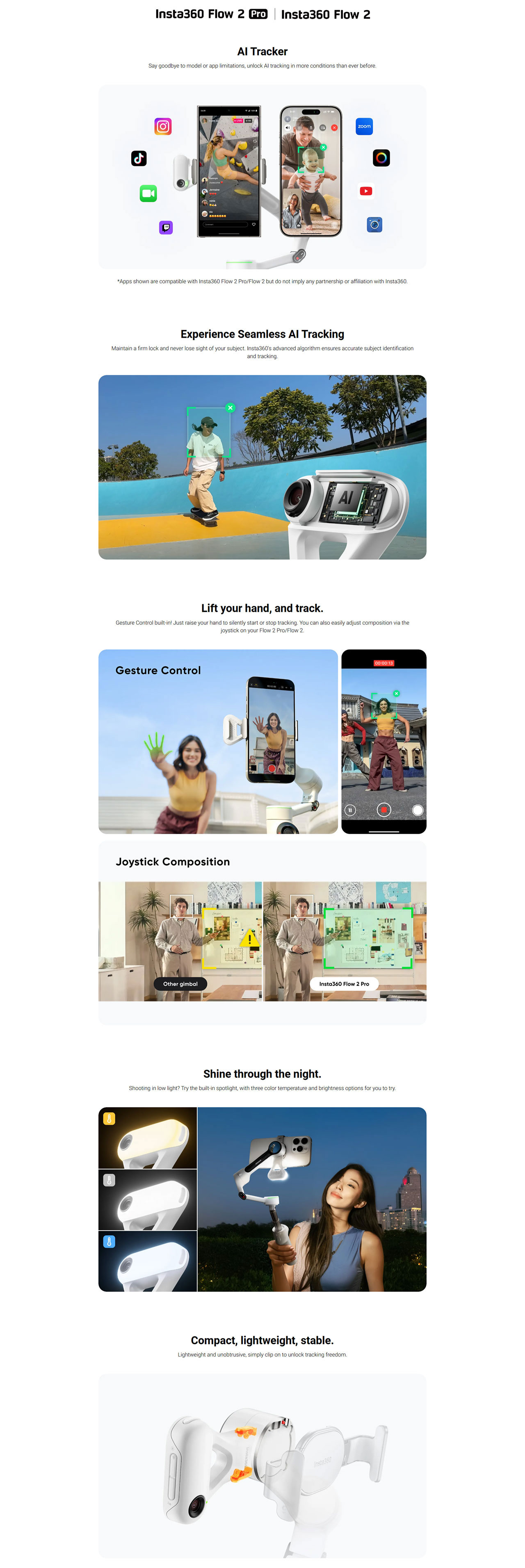 - Break free from app or phone limitations. Track video calls, livestreams, and online meetings with more models supported. When paired with Flow 2 Pro, you'll get enhanced tracking precision for better mobile shots.