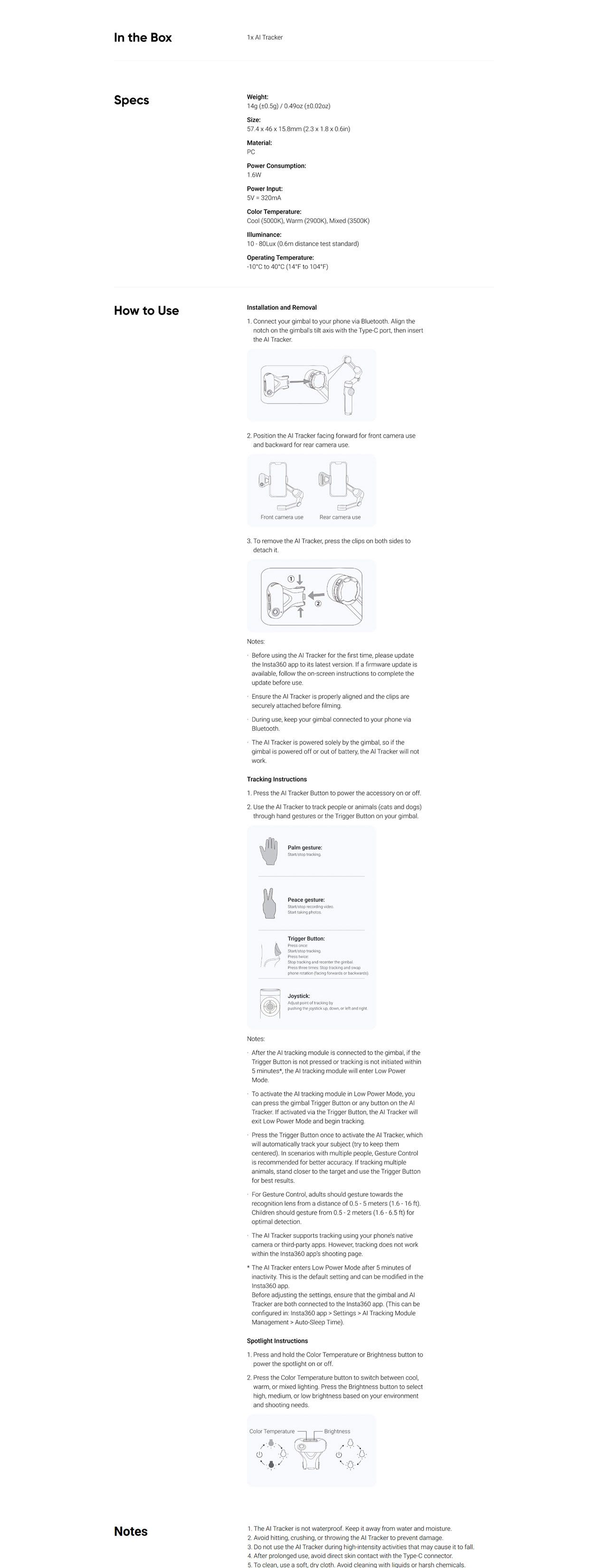 - Supports Gesture Control. Simply raise your hand to start or stop AI tracking.