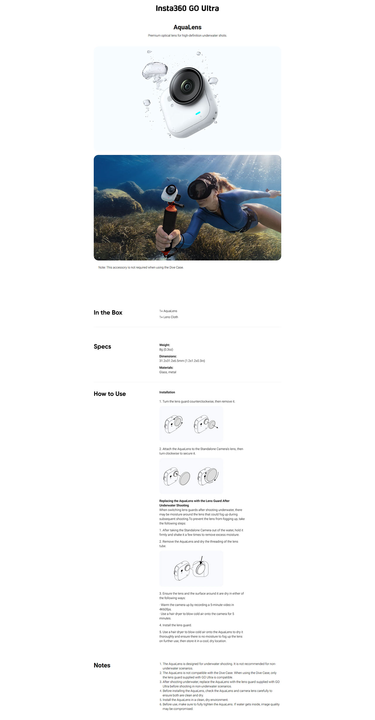 INSTA360 GO ULTRA AQUALENS CINSCBEK