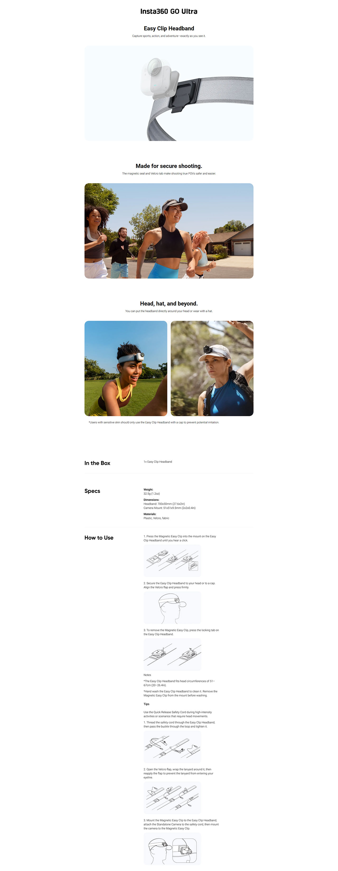 INSTA360 GO ULTRA EASY CLIP HEADBAND (GRAY) CINSBBEH