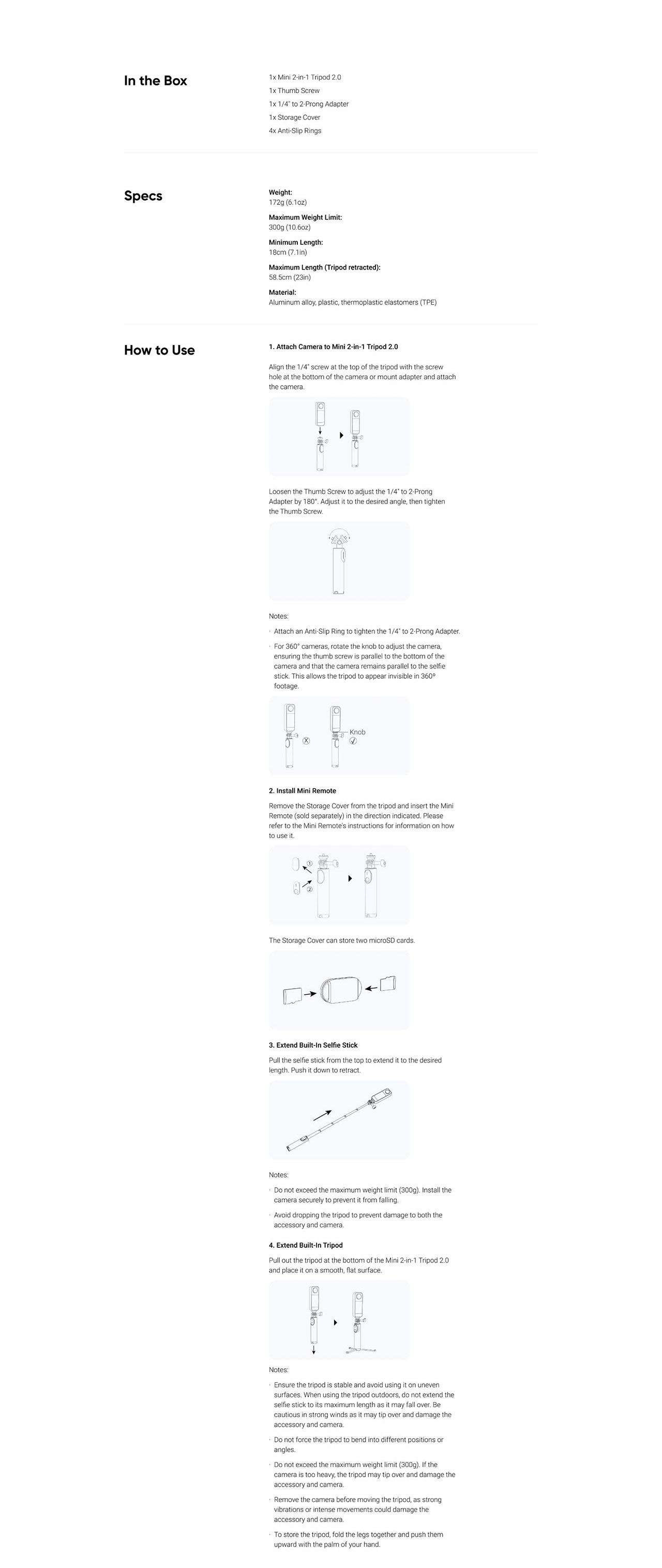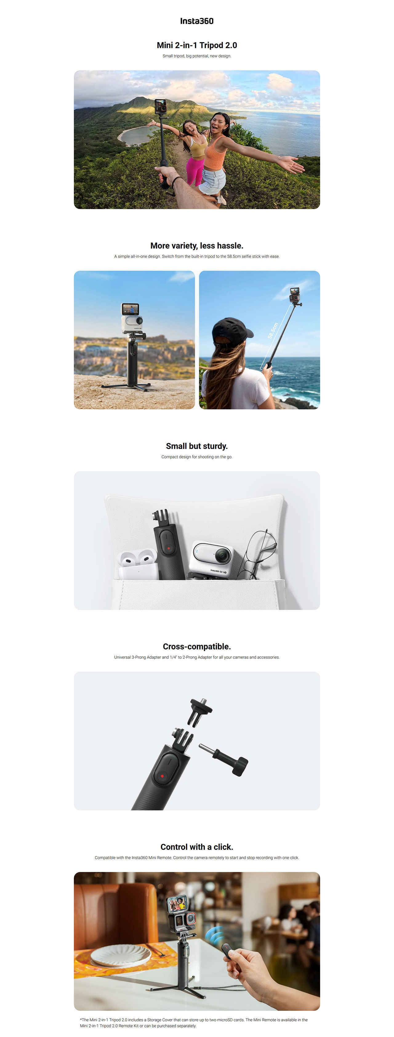 - Compatible with the Insta360 Mini Remote (sold separately) to start and stop recording with a click.