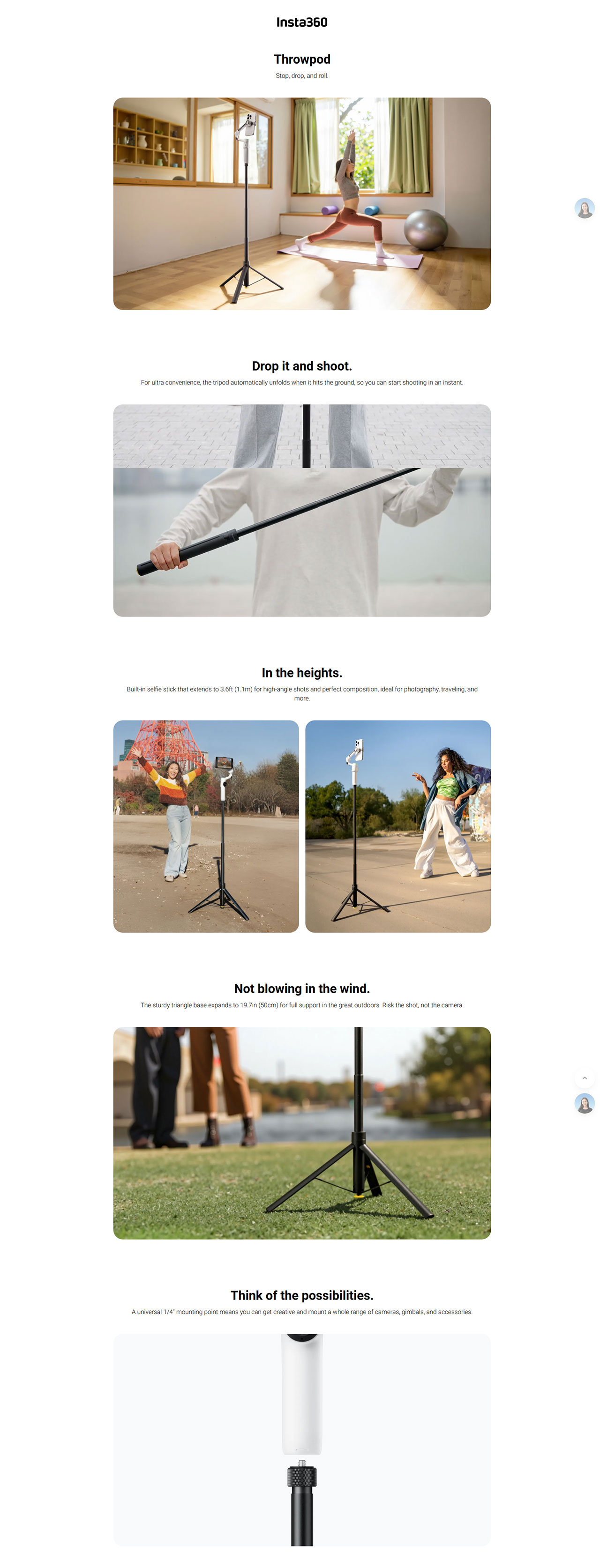 - The legs automatically unfold when the tripod hits the ground for quick, easy use. Simply drop and shoot.