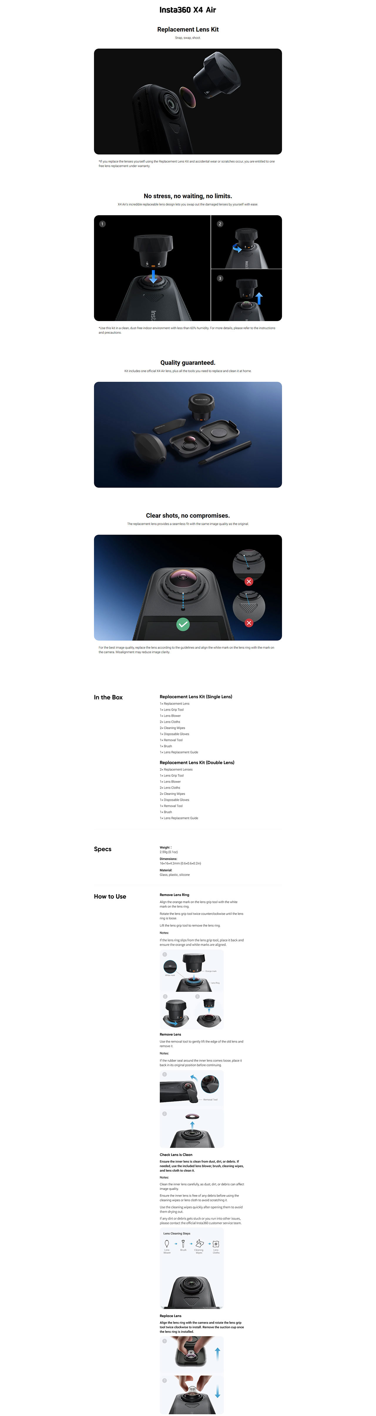 - Handy kit to easily remove and replace the outer lenses of Insta360 X4 Air on the go.