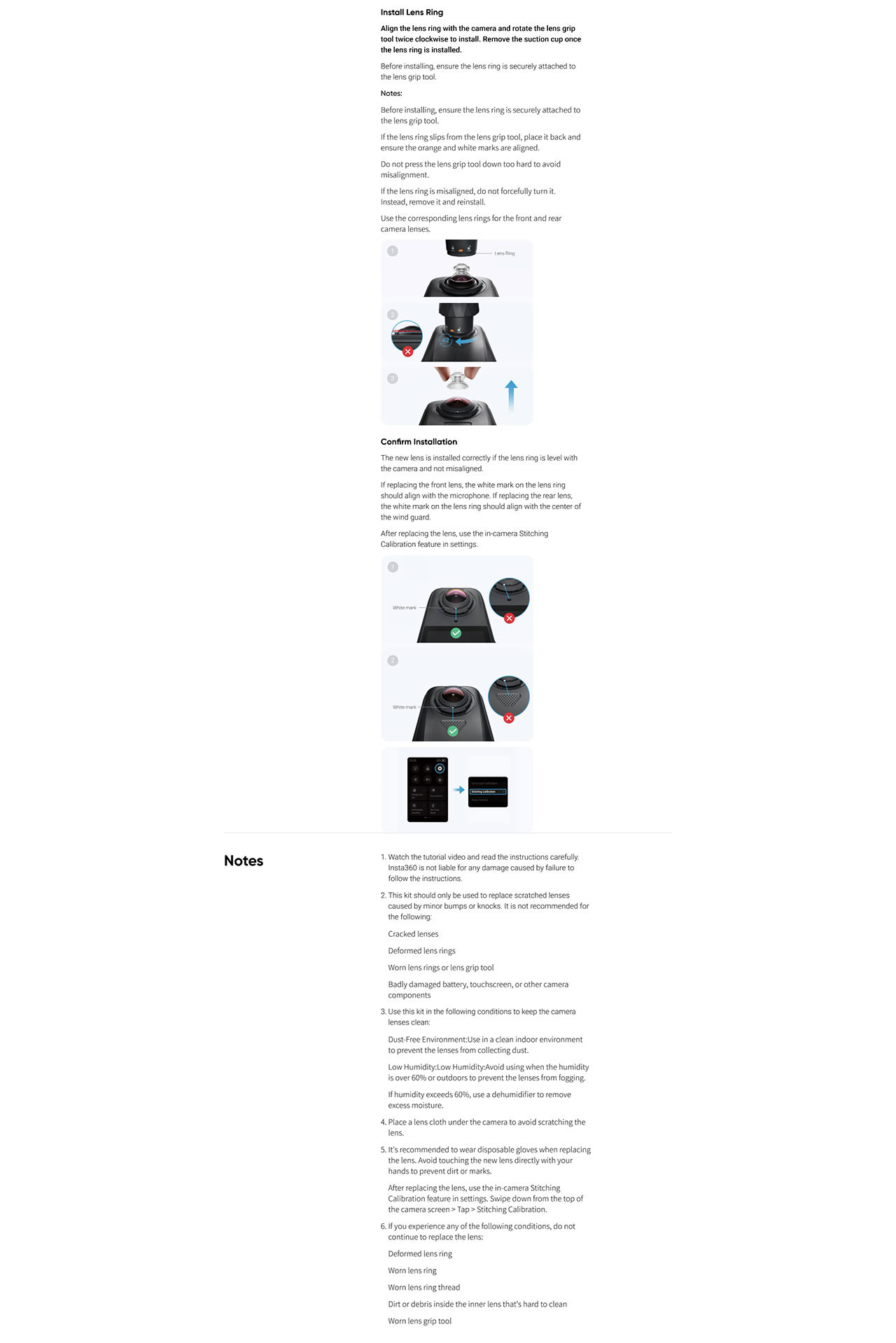 - If you need help using the kit to replace the lens, or if you encounter any issues afterward, please contact our after-sales service to arrange a free replacement when you send the camera and Replacement Lens Kit. Please note that a fee will apply if you don't send the Replacement Lens Kit with the spare lens.