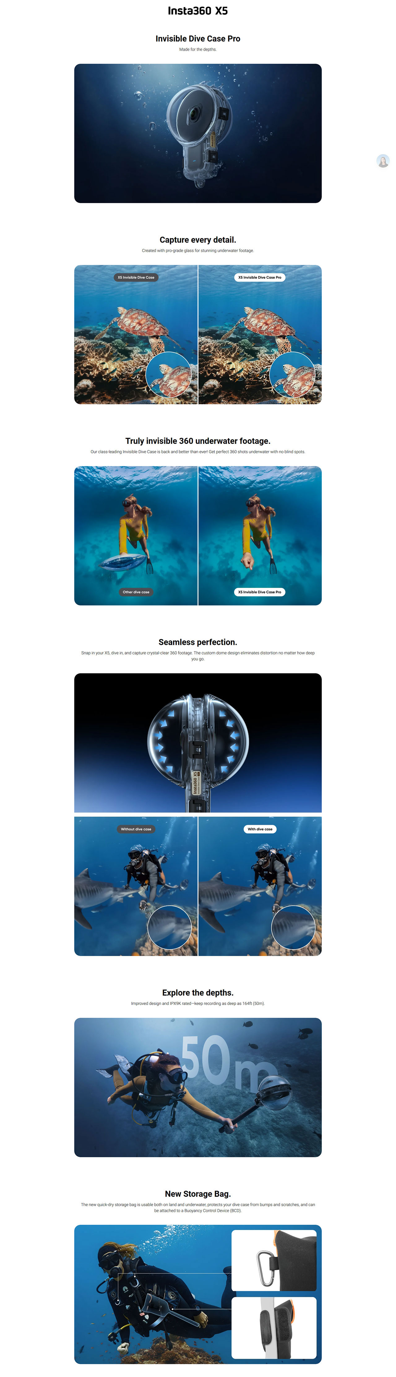 - Insta360 X5 automatically recognizes the Invisible Dive Case Pro and enters Dive Case Mode, meaning you can start creating in moments.