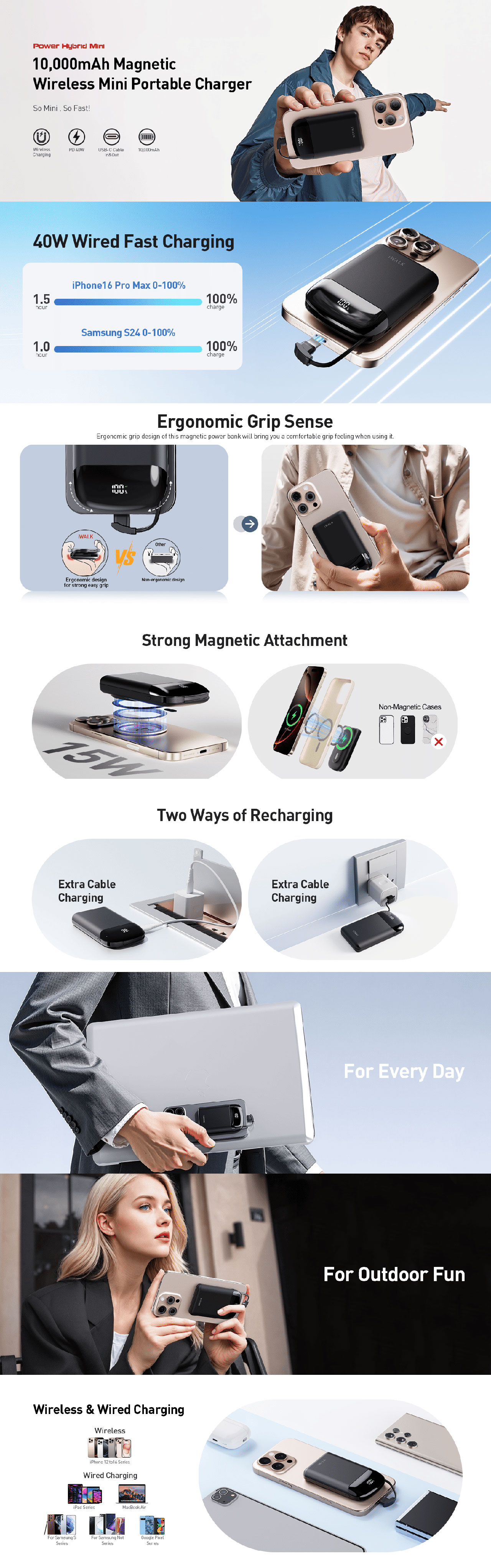 IWALK 10000MAH 40W POWER HYBRID MINI MAGNETIC WIRELESS POWERBANK - BLACK MXB017-001A
