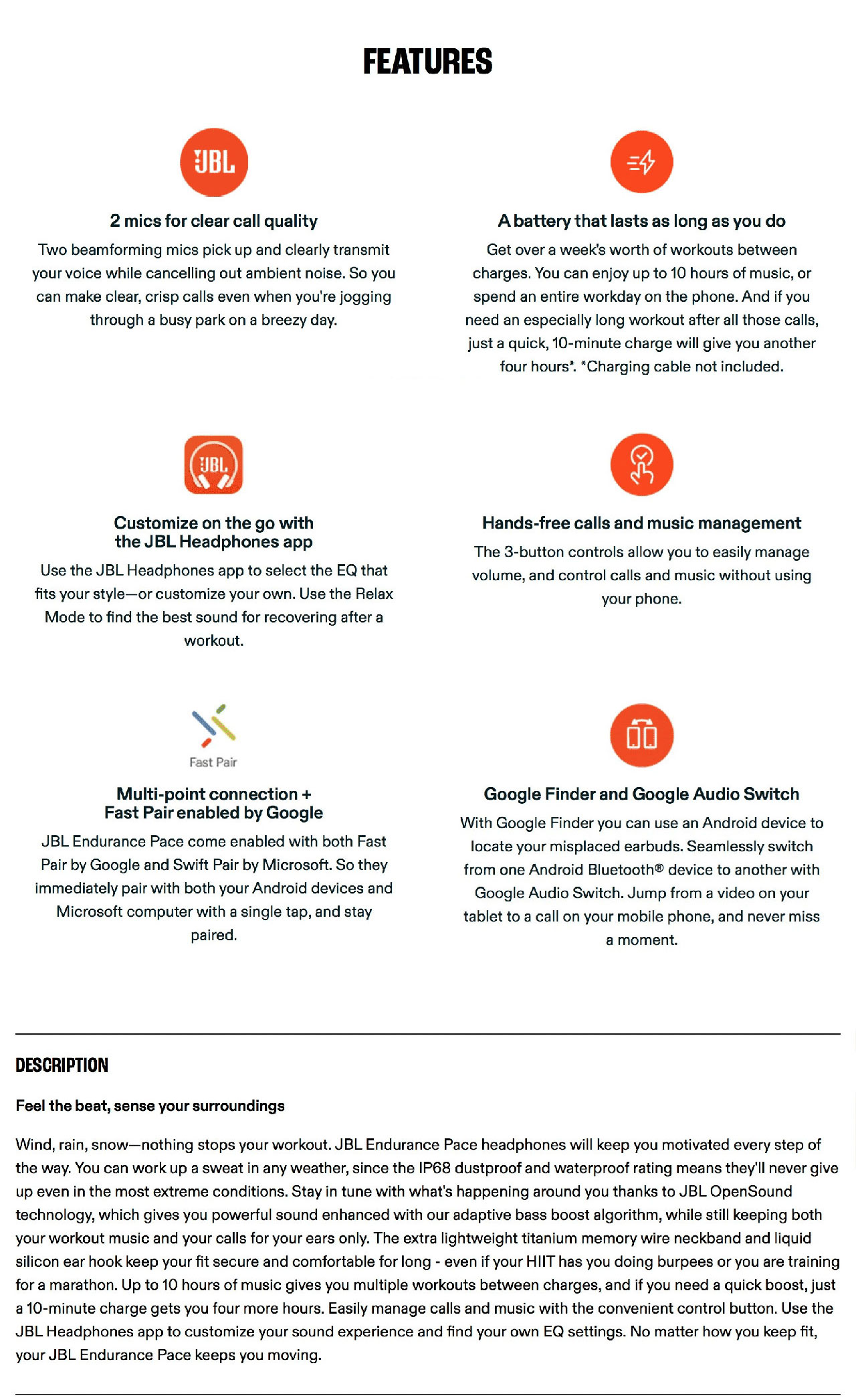 JBL ENDURANCE PACE OPEN-EAR WIRELESS HEADSET - BLUE JBL-HPS-ENDUPACE BLU