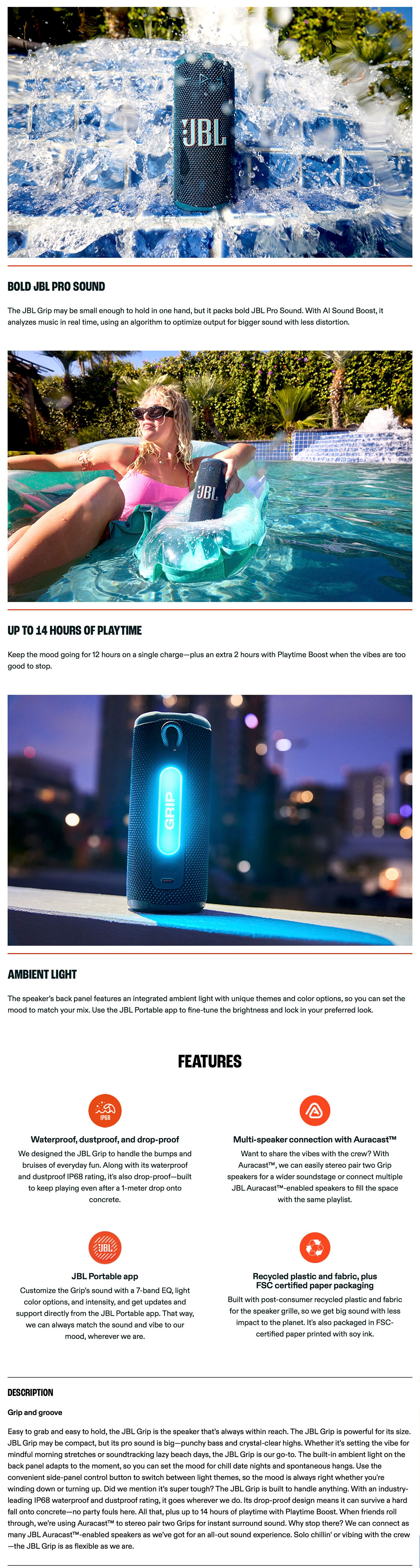 JBL GRIP COMPACT WIRELESS SPEAKER - ORANGE JBL-SPK-GRIP ORG