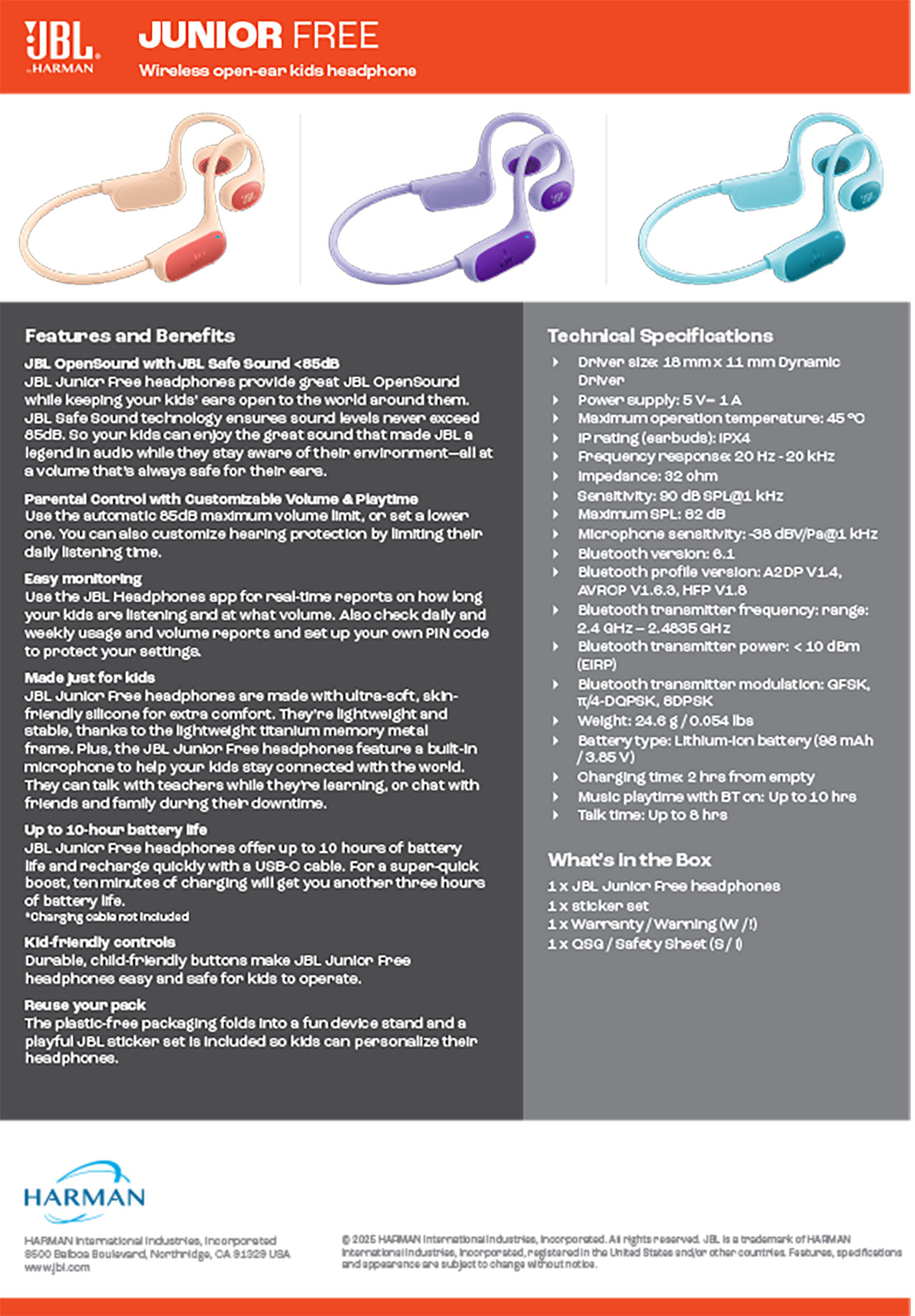 JBL JUNIOR FREE OPEN-EAR WIRELESS HEADSET - PURPLE JBL-HPS-JRFREE PUR