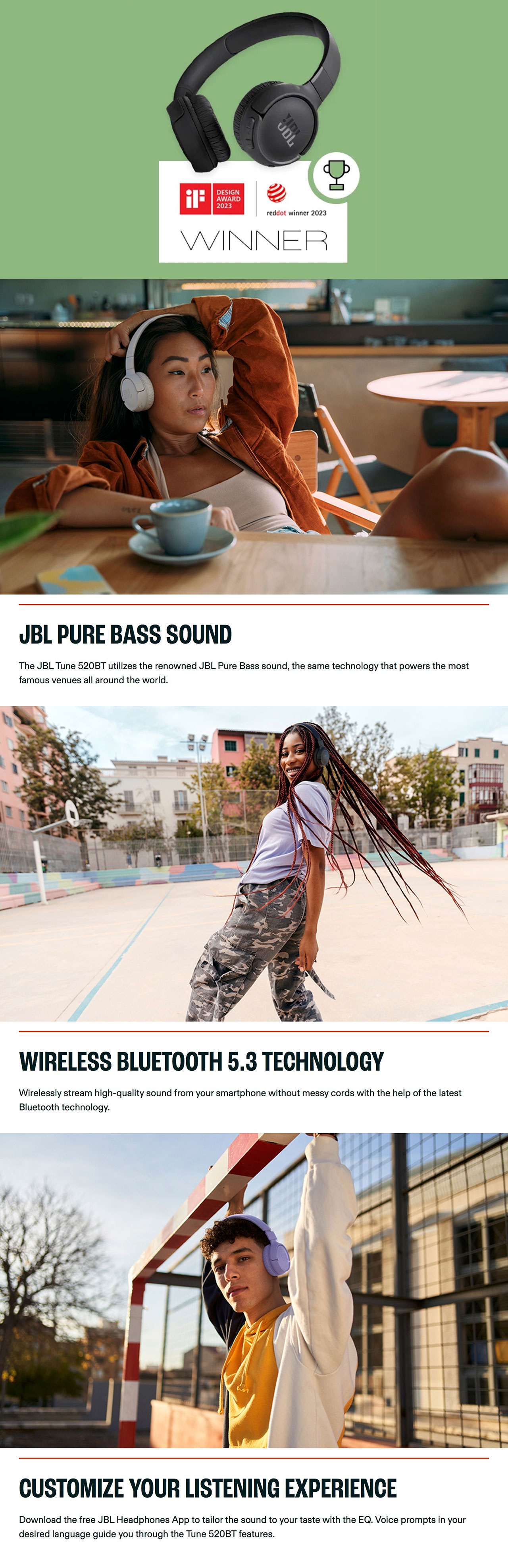 The JBL Tune 520 Wireless Headset is ideal for music enthusiasts who crave powerful bass and wireless convenience. Perfect for commuters, students, and anyone who loves to enjoy music on the go.