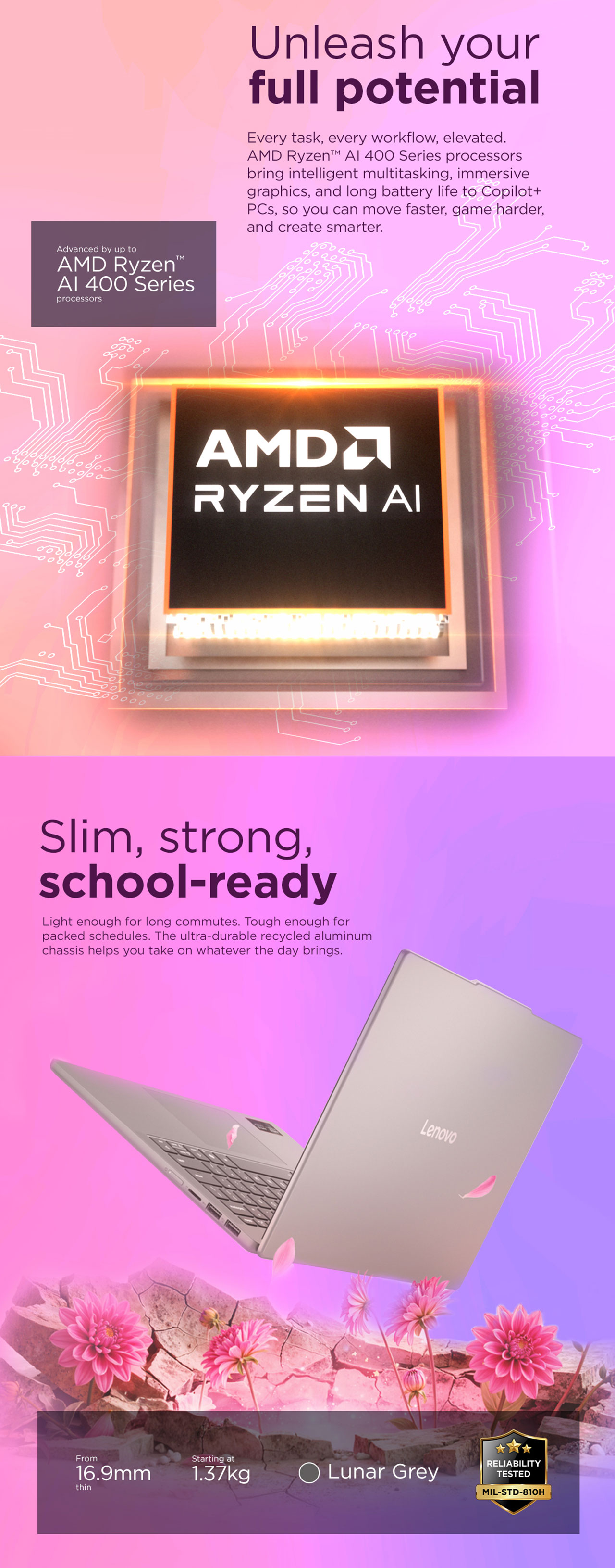 - Processor: AMD Ryzen AI 7 445 with integrated NPU for local AI tasks.