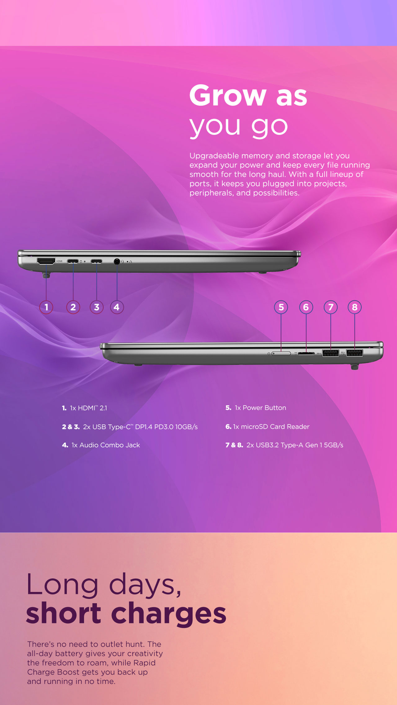 - Display: 14.0" WUXGA (1920 x 1200) OLED panel, which provides superior contrast and 100% DCI-P3 color accuracy compared to standard IPS screens.