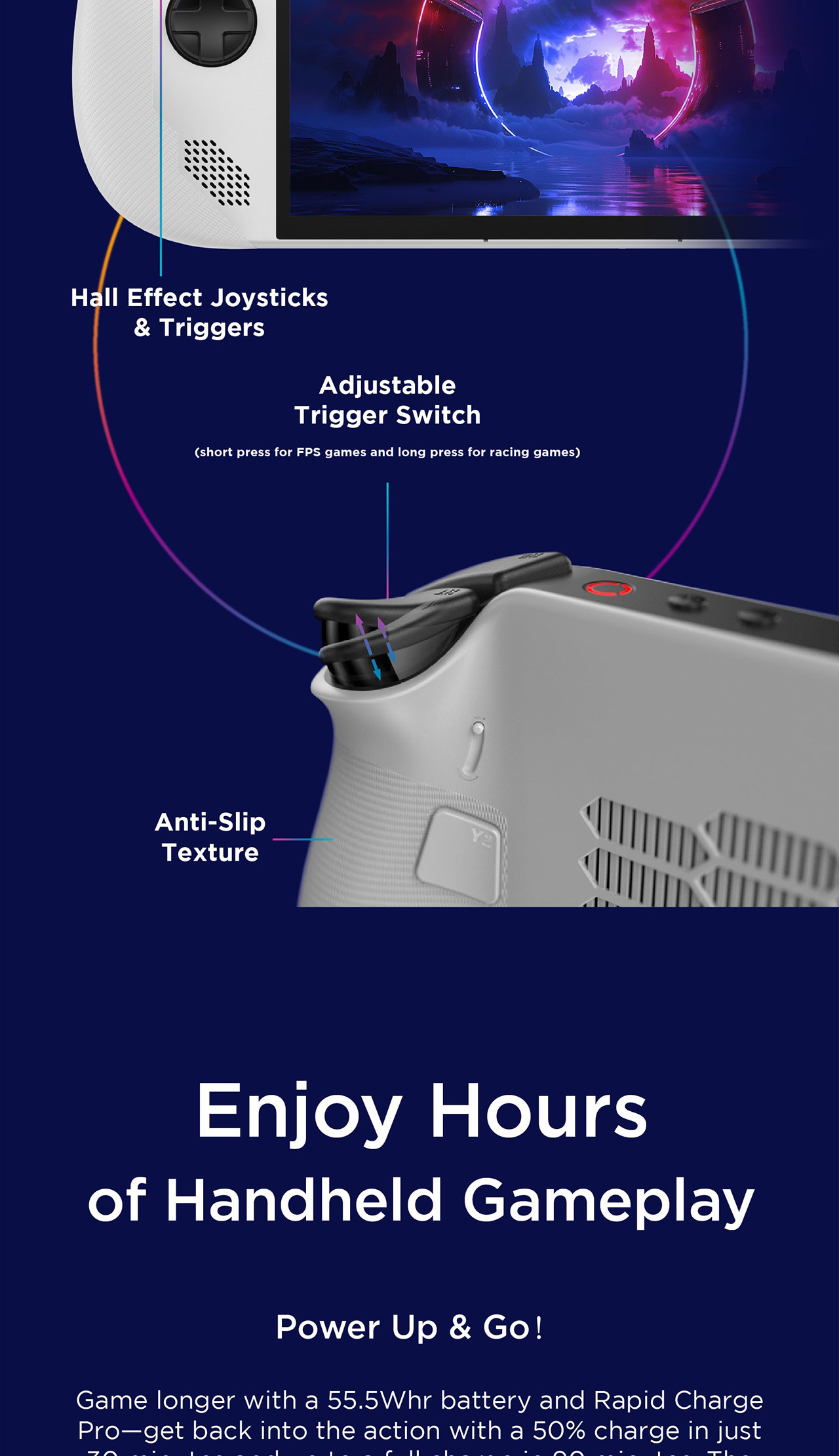 - Long-lasting Battery: 55.5Whr battery with Rapid Charge Pro for extended play sessions.