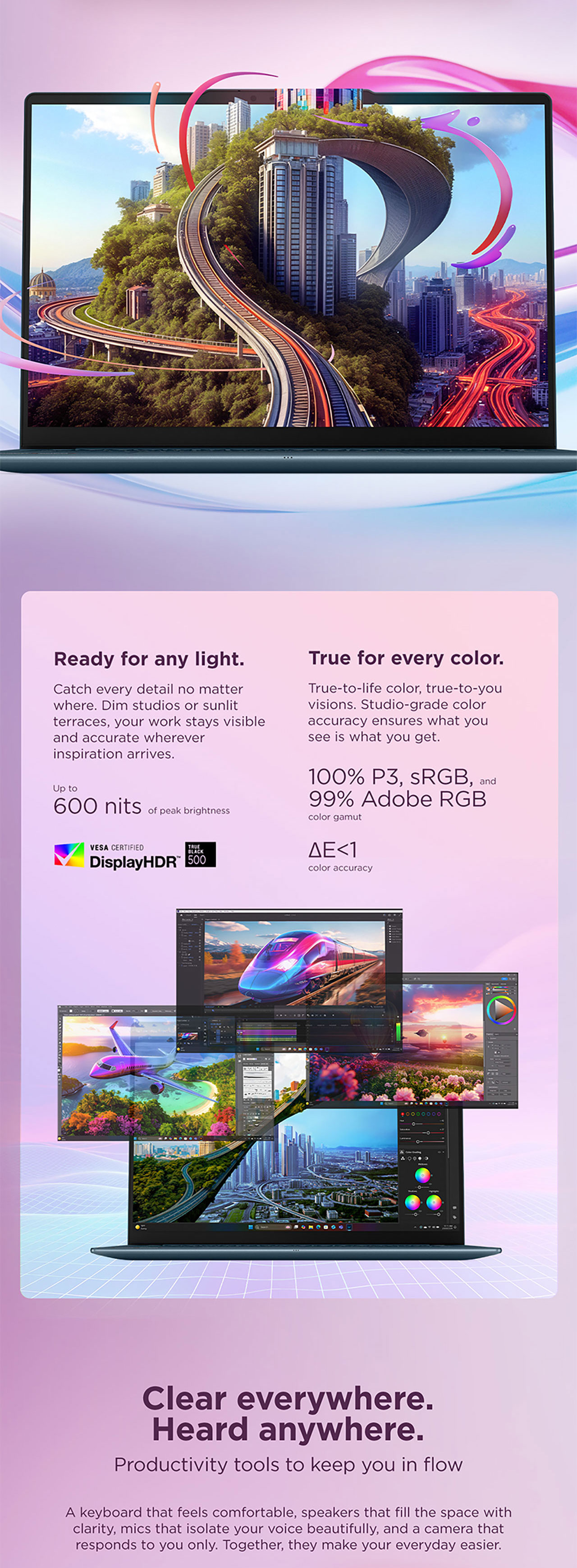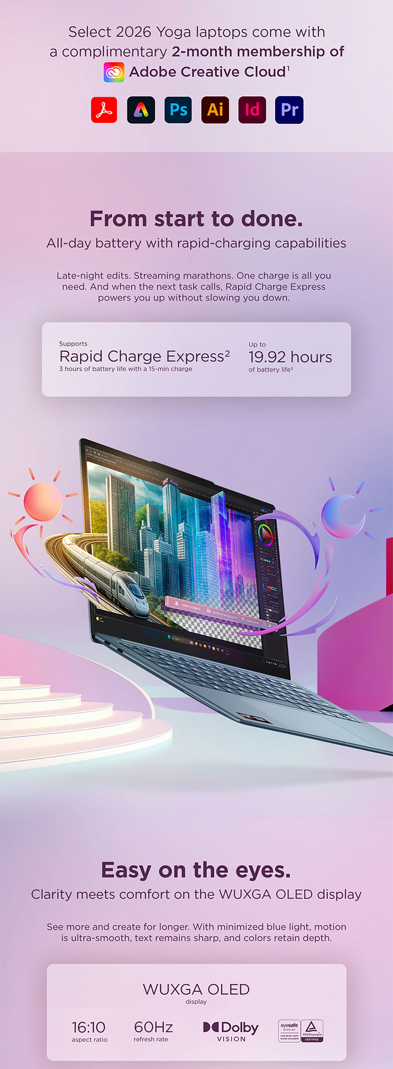 - Color: 100% DCI-P3, Dolby Vision®, Eyesafe® Certified