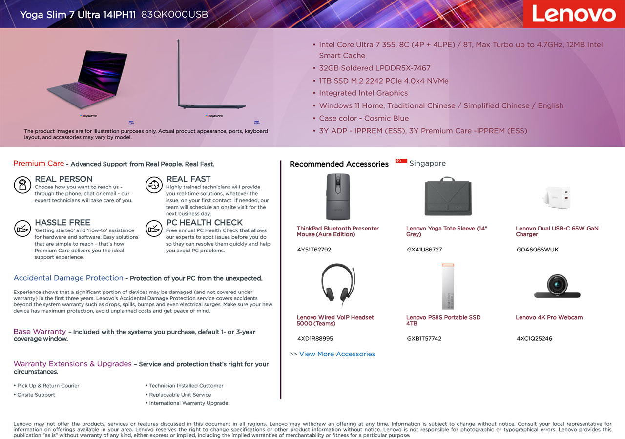LENOVO YOGA SLIM 7 ULTRA 14" COPILOT+ PC FIFA EDITION ULTRA 7 355 83QK000USB
