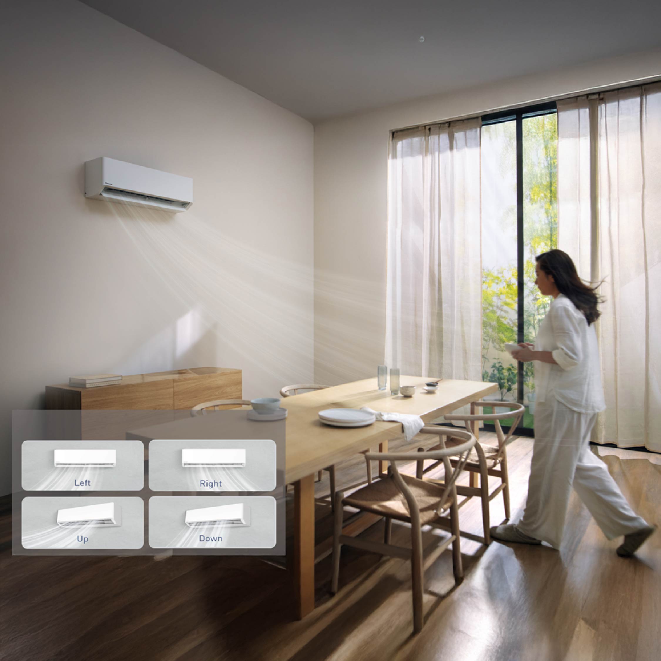 Every person has their own comfort threshold, some want a quick burst of cold after a long day out, while others prefer a subtle breeze that doesn’t overwhelm. With Aerowings™ dual flaps, the X-Premium Inverter series directs airflow exactly where you need it. You’ll experience faster, more even cooling across the room, while the option for a gentler breeze ensures comfort that feels natural rather than mechanical.