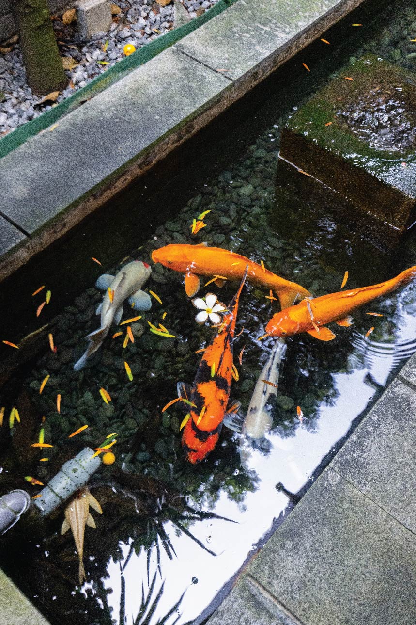 "Mum chills at her cosy corner by the staircase fountain, I have mine at the sittting room next to the koi pond. We're drawn to our own spaces, yet still connected on the same level of the home"