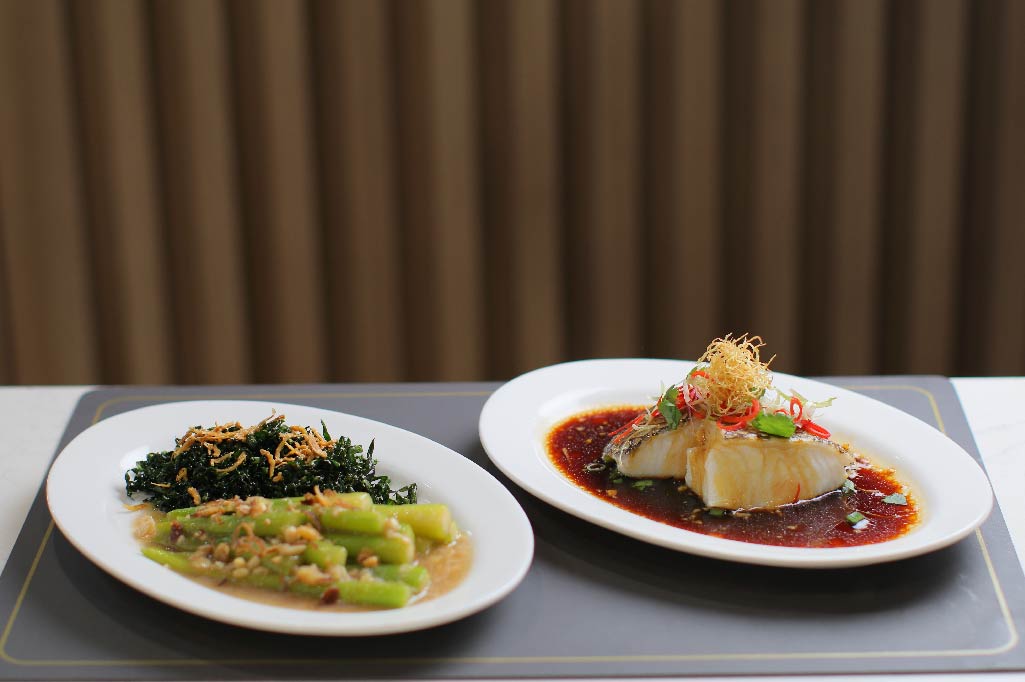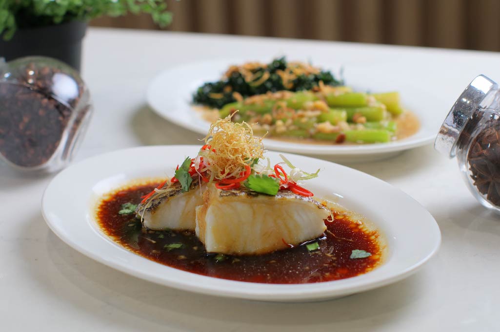 At Lucky Cuisine (Level 3), savour the HK–Style Steamed Cod Fish & Yin Yang HK Kailan with rice set for 2 pax for just $49.90 (inclusive of GST).
