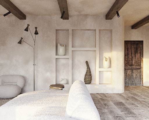 These elements introduce a gentle rhythm that makes spaces feel: