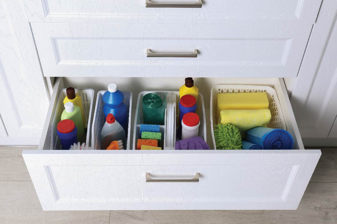 In five minutes, you can toss expired sponges, wipe the base, and group cleaning sprays into a plastic caddy. A quick refresh goes a long way